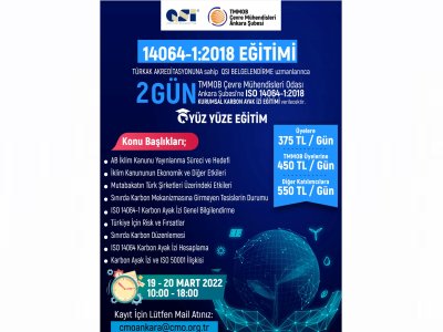 19-20 MART 2022 TARİHİNDE `ISO 14064-1:2018 KURUMSAL KARBON AYAK İZİSTANDARDI ÇERÇEVESİNDE SERA GAZLARI EMİSYONLARININ VE UZAKLAŞTIRMALARININ KURULUŞ SEVİYESİNDE HESAPLANMASI VE RAPORLANMASI) BİLGİLENDİRME EĞİTİMİ` Nİ GERÇEKLEŞTİRDİK