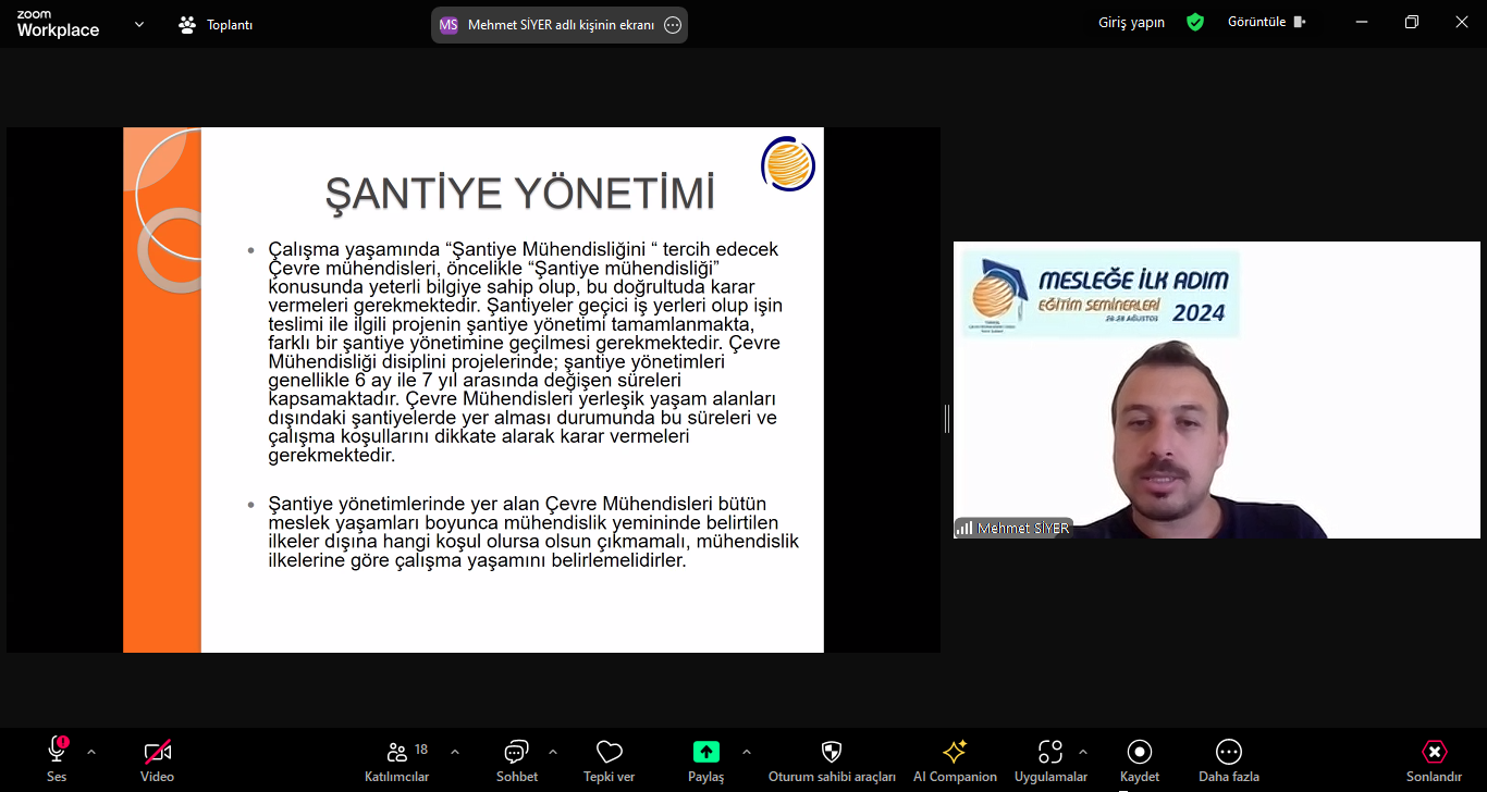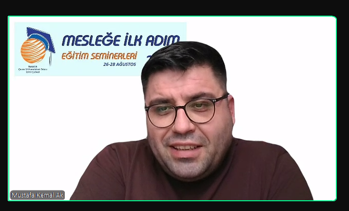 Çevre Mühendisliği Bölümünden mezun olarak aramıza yeni katılan meslektaşlarımıza yönelik ilkini 2013 yılında gerçekleştirdiğimiz Mesleğe İlk Adım Eğitim Seminerimizin 11.'sini 26-27-28 Ağustos 2023 tarihlerinde çevrimiçi olarak gerçekleştirilmiştir.