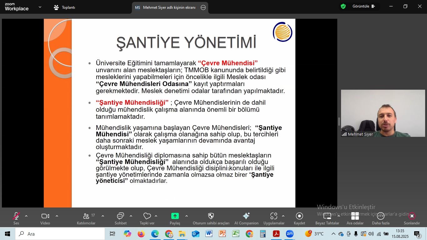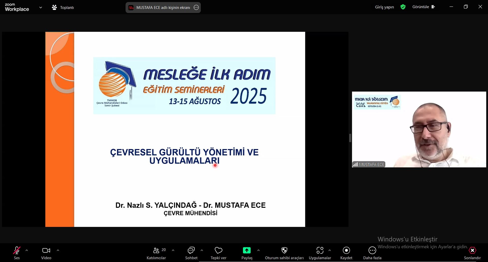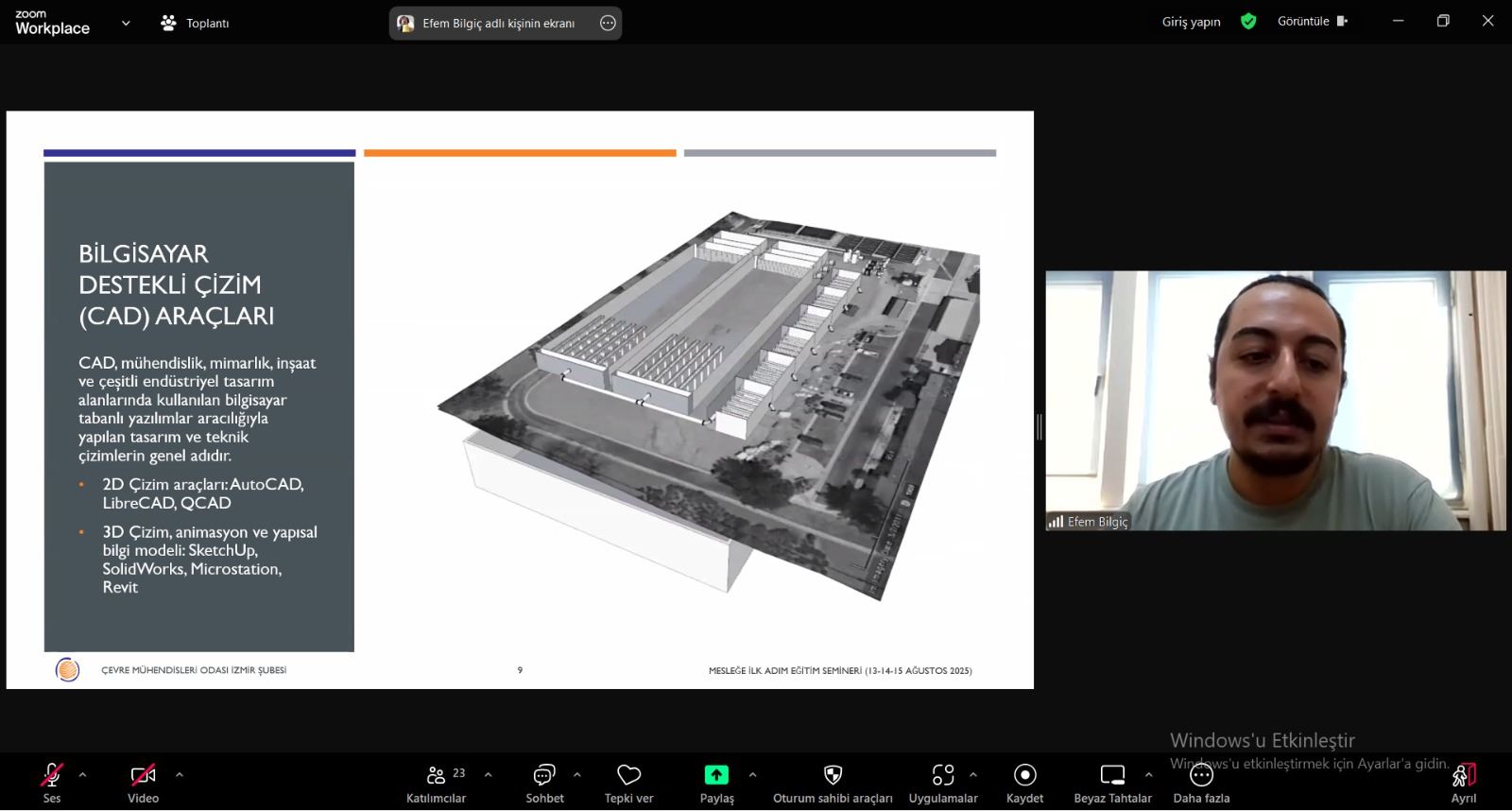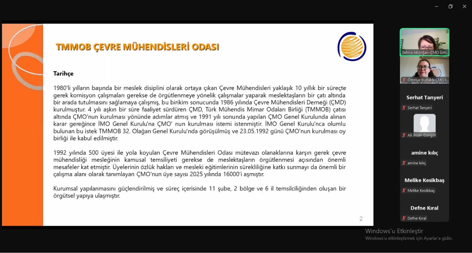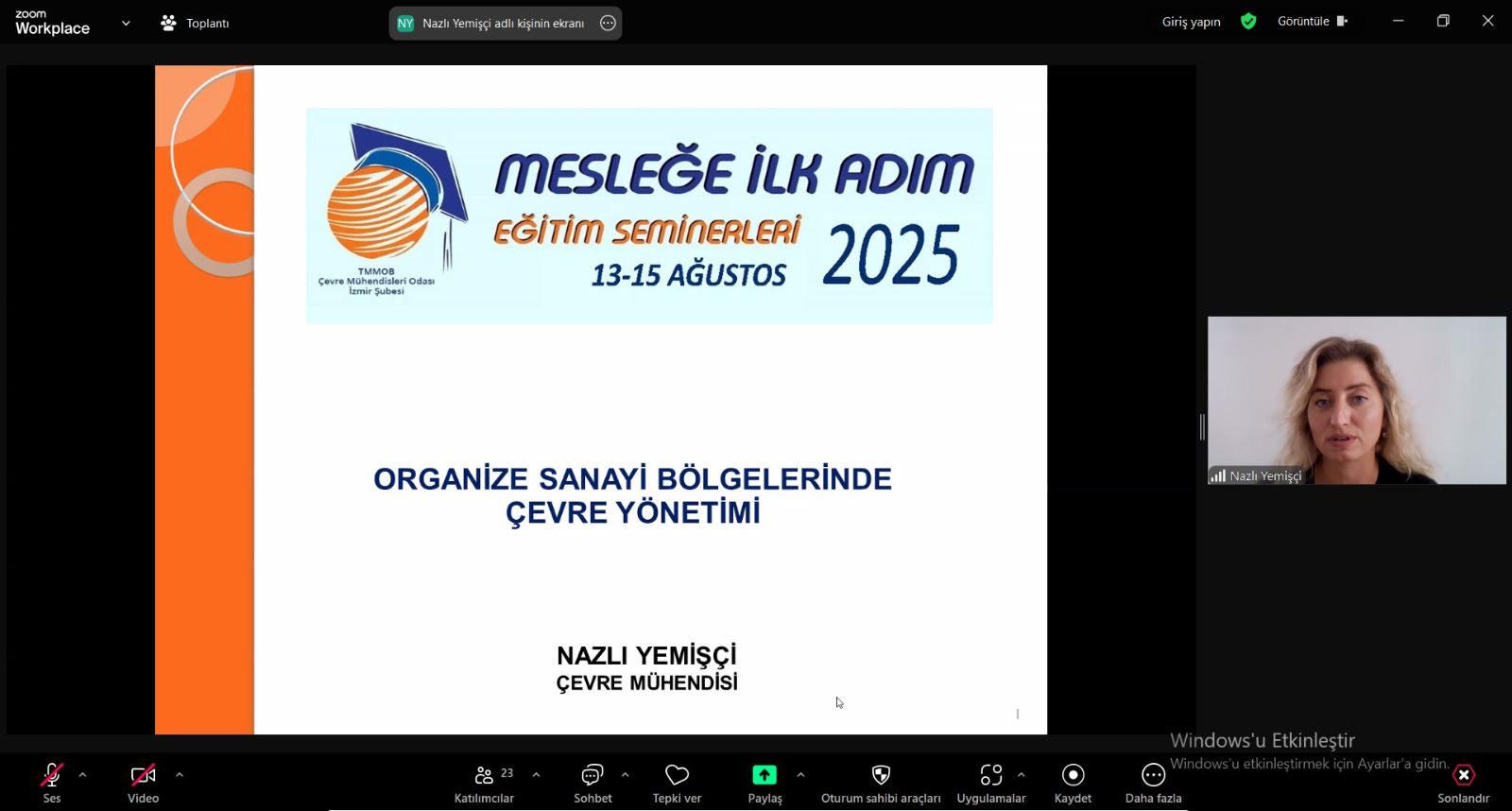 Çevre Mühendisliği Bölümünden mezun olarak aramıza yeni katılan meslektaşlarımıza yönelik ilkini 2013 yılında gerçekleştirdiğimiz Mesleğe İlk Adım Eğitim Seminerimizin 13.'sünü 13-14-15 Ağustos 2025 tarihlerinde çevrimiçi olarak gerçekleştirilmiştir.