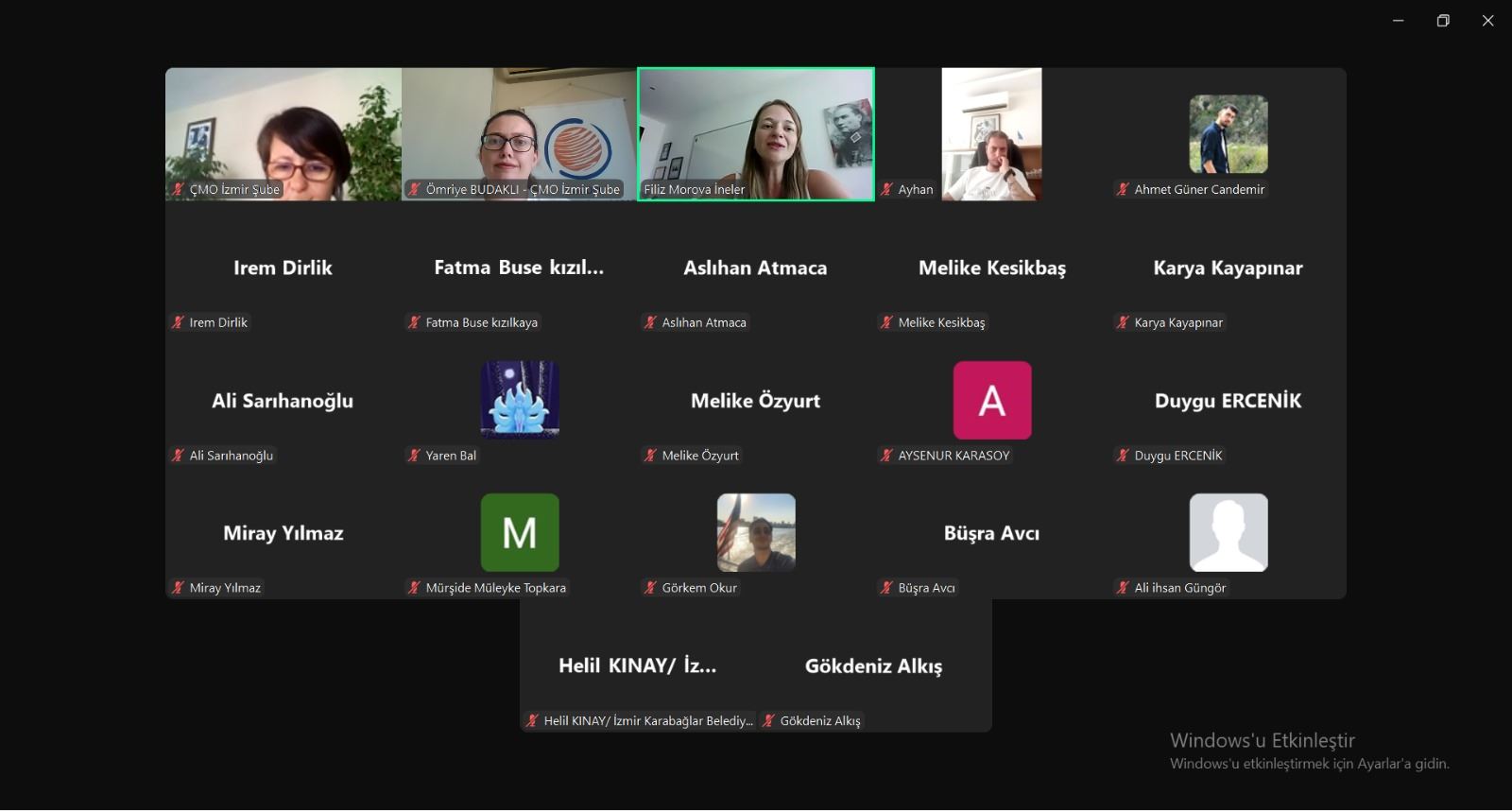 Eğitim seminerimiz sürecinde bizlerle birlikte olan ve eğitimci olarak destek veren meslektaşlarımız Afşar ÜRÜT, Ceyda Ceren ULUER, Cihan DÜNDAR, Çiğdem TEKNECİ, Efem BİLGİÇ, Lütfü KIPKIP, Mehmet SİYER, Mustafa ECE, Mustafa Kemal AK, Müge BAĞIRGAN, Nazlı YEMİŞÇİ, Rahile YENİ, Serhat TANYERİ, Yasemin ÖZDEMİR ve Yiğithan KAZANCI’ya katkı ve destekleri için teşekkür ediyoruz.