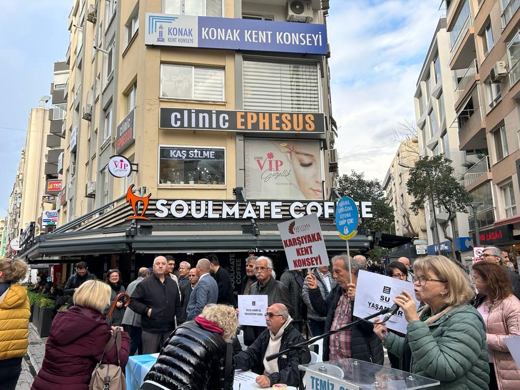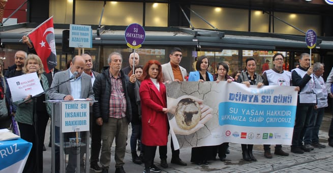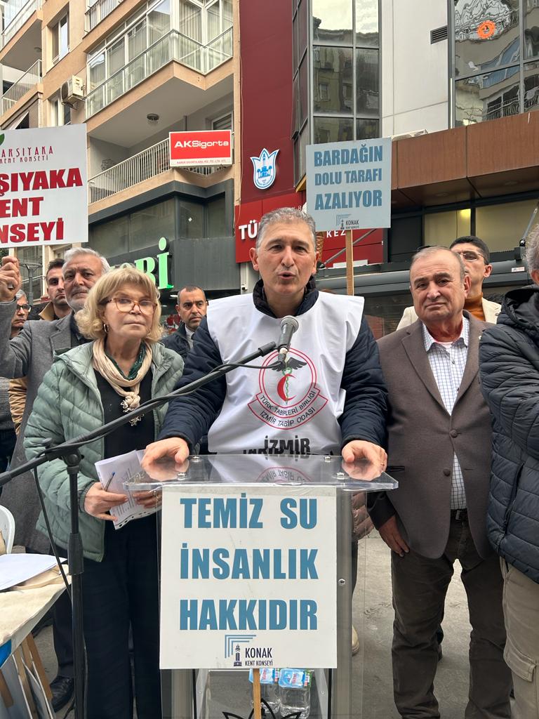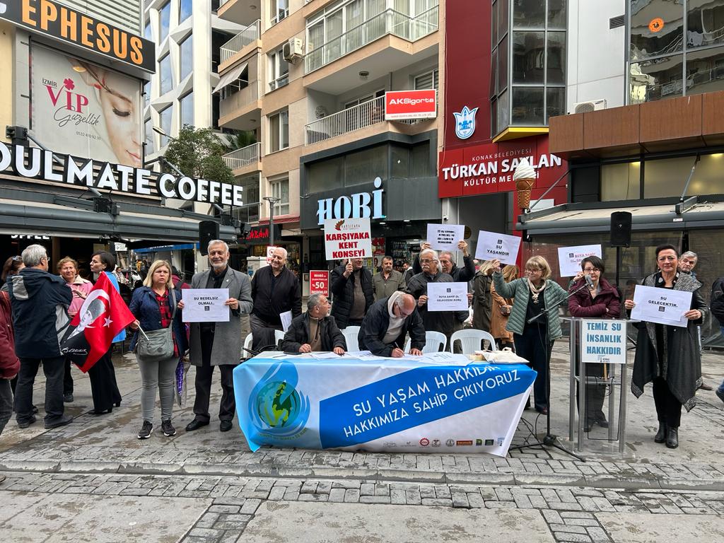 22 Mart Dünya Su Günü nedeniyle TMMOB İzmir İl Koordinasyon Kurulu, İzmir Tabip Odası, İzmir Barosu, Ege Kent Konseyleri Birliği, İzmir Kent Konseyleri Birliği, Konak Kent Konseyi, DİSK, KESK, İzmir Yaşam Alanları, EGEÇEP tarafından ortak basın açıklaması yapıldı.