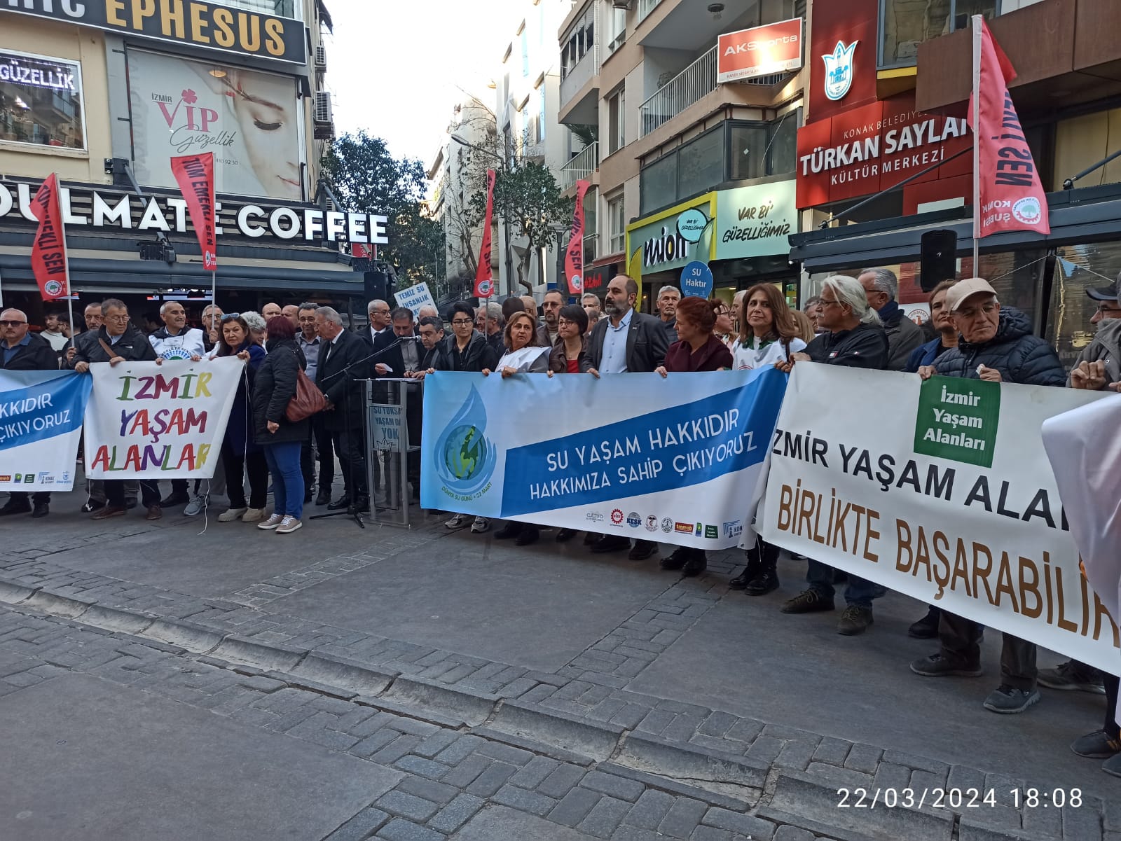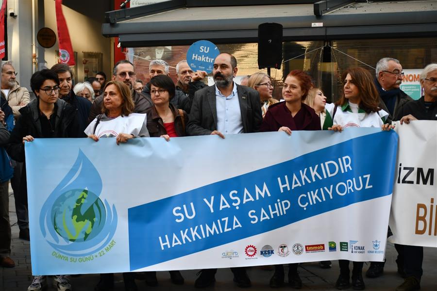 22 Mart Dünya Su Günü nedeniyle TMMOB İzmir İl Koordinasyon Kurulu, İzmir Tabip Odası, İzmir Barosu, Ege Kent Konseyleri Birliği, Konak Kent Konseyi, Konak Belediyesi, DİSK, KESK, İzmir Yaşam Alanları, EGEÇEP tarafından hazırlanan program kapsamında İzmir Mimarlık Merkezinden Türkan Saylan Kültür Merkezi önüne kadar yapılan "Dünya Su Günü Farkındalık Yürüyüşü" ardından ortak basın açıklaması yapıldı.