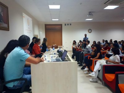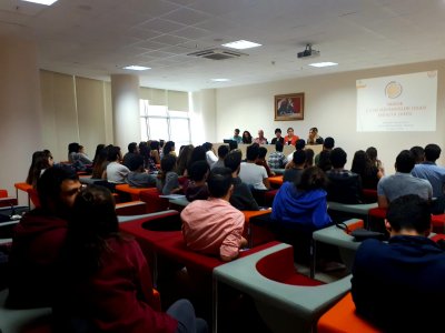 Çevre Mühendisleri Odası Antalya Şubesi olarak 2 Kasım 2018 tarihinde saat 17:00‘de Akdeniz Üniversitesi Çevre Mühendisliği Bölümü öğrencileriyle söyleşi yapmak üzere bir araya geldik. Çevre mühendisliği bölümünün daveti üzerine düzenlemiş olduğumuz söyleşiye Yönetim Kurulu Üyelerimiz Derya ÜNVER, Cengiz ÇELEN, Canan AKTAŞ, Hatice ÇETİN, Elif İlkem İNCİ, Mehmet Can AVŞAR ve İbrahim CANSEVER ile Şube Teknik Personelimiz Yusuf KOZ katılım sağladı. Söyleşide Yönetim Kurulu üyelerimiz öğrencilere, mesleki deneyimleri hakkında bilgi verdi. Ayrıca mesleki yaşamlarında faydalı olabilecek eğitim ve sertifikalarla ilgili tavsiyelerde bulunuldu. Ardından soru cevap kısmına geçildi. Öğrencilerin sorularının cevaplanmasının ardından ise Şubemizin aktivitelerinin sergilendiği videonun gösterimi yapıldı.