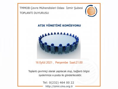 Şubemiz Atık Yönetimi Komisyonu Toplantısı; 16 Eylül 2021 Salı günü 21:00da çevrimiçi olarak gerçekleştirilecektir.