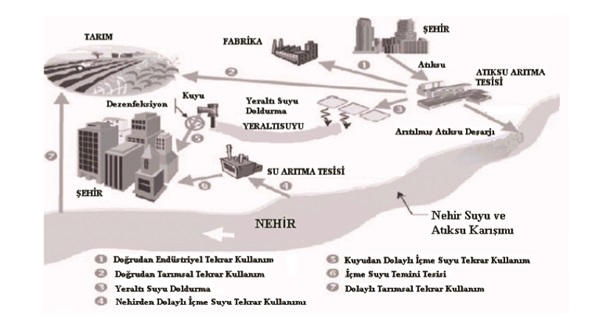 Şekil 1: Atıksu Arıtma ve Tekrar Kullanımı İçeren Su Çevrimi