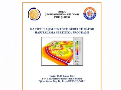Çevre Mühendisleri Odası İzmir Şubesi olarak, 25 -28 Kasım 2014 tarihleri arasında "B-2 Tipi Ulaşım Sektörü Gürültü Rapor Haritalama Sertifika Programı" Eğitimi düzenlenecektir. Eğitim içeriği ekte yer almaktadır.