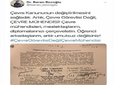 BAŞARDIK! ARTIK; ÇEVRE GÖREVLİSİ DEĞİL ÇEVRE MÜHENDİSİ!