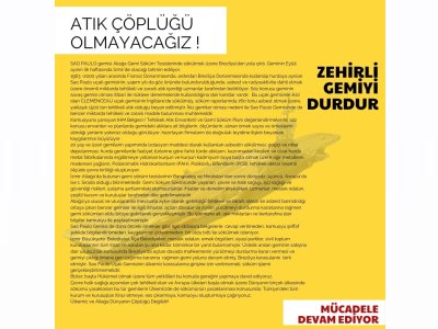 ATIK ÇÖPLÜĞÜ OLMAYACAĞIZ! ZEHİRLİ GEMİYİ DURDURUN!