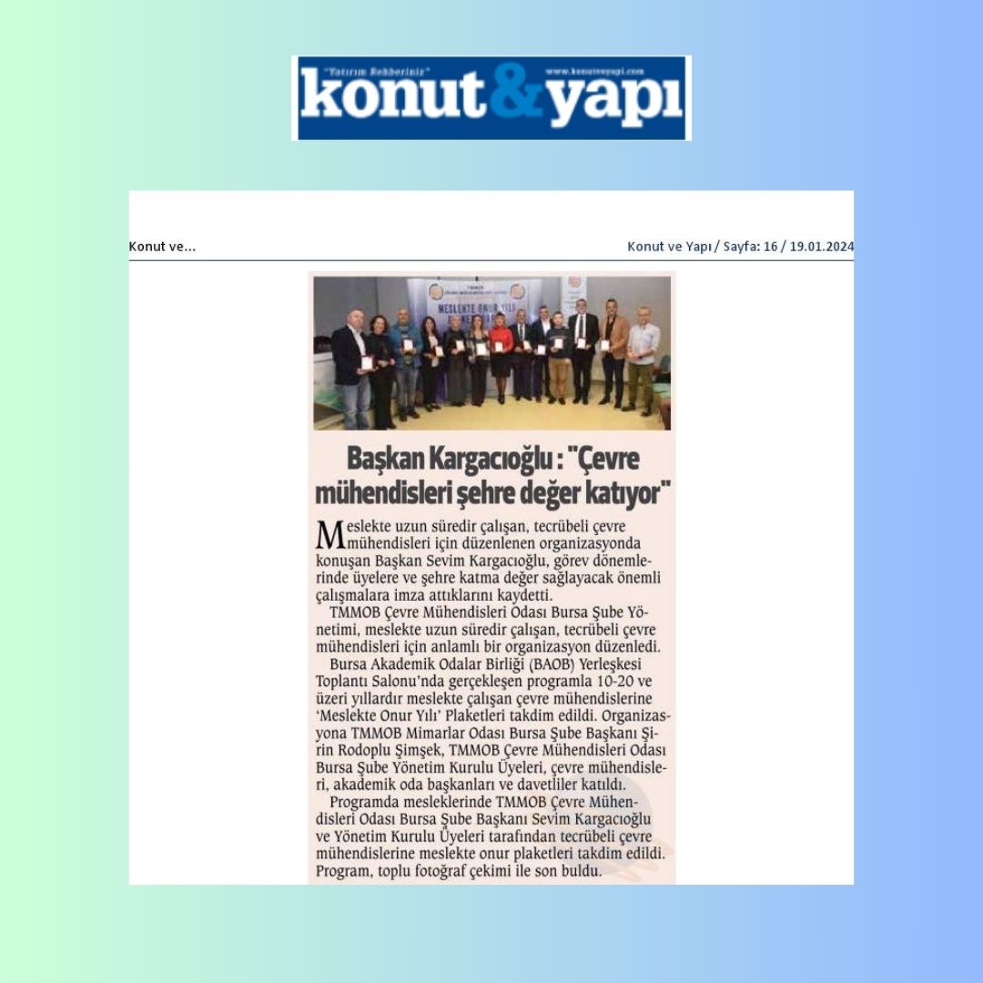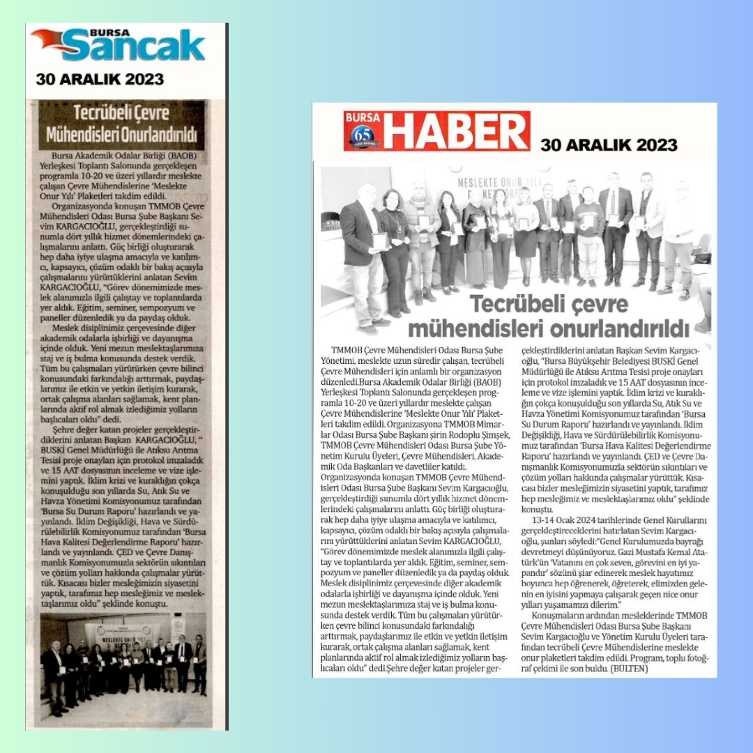 BASINDA BİZ-BURSA ŞUBE MESLEKTE ONUR YILI PLAKET TÖRENİ