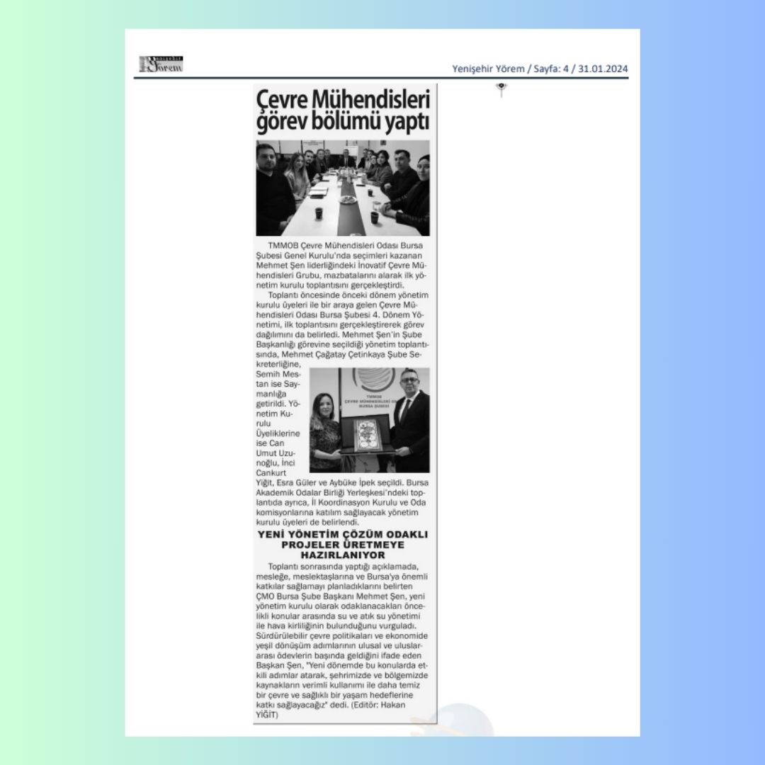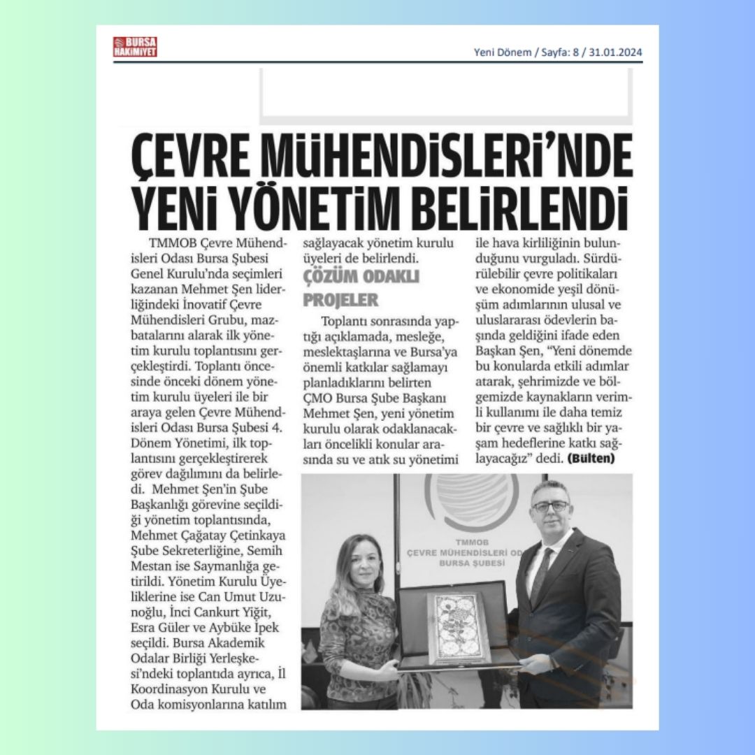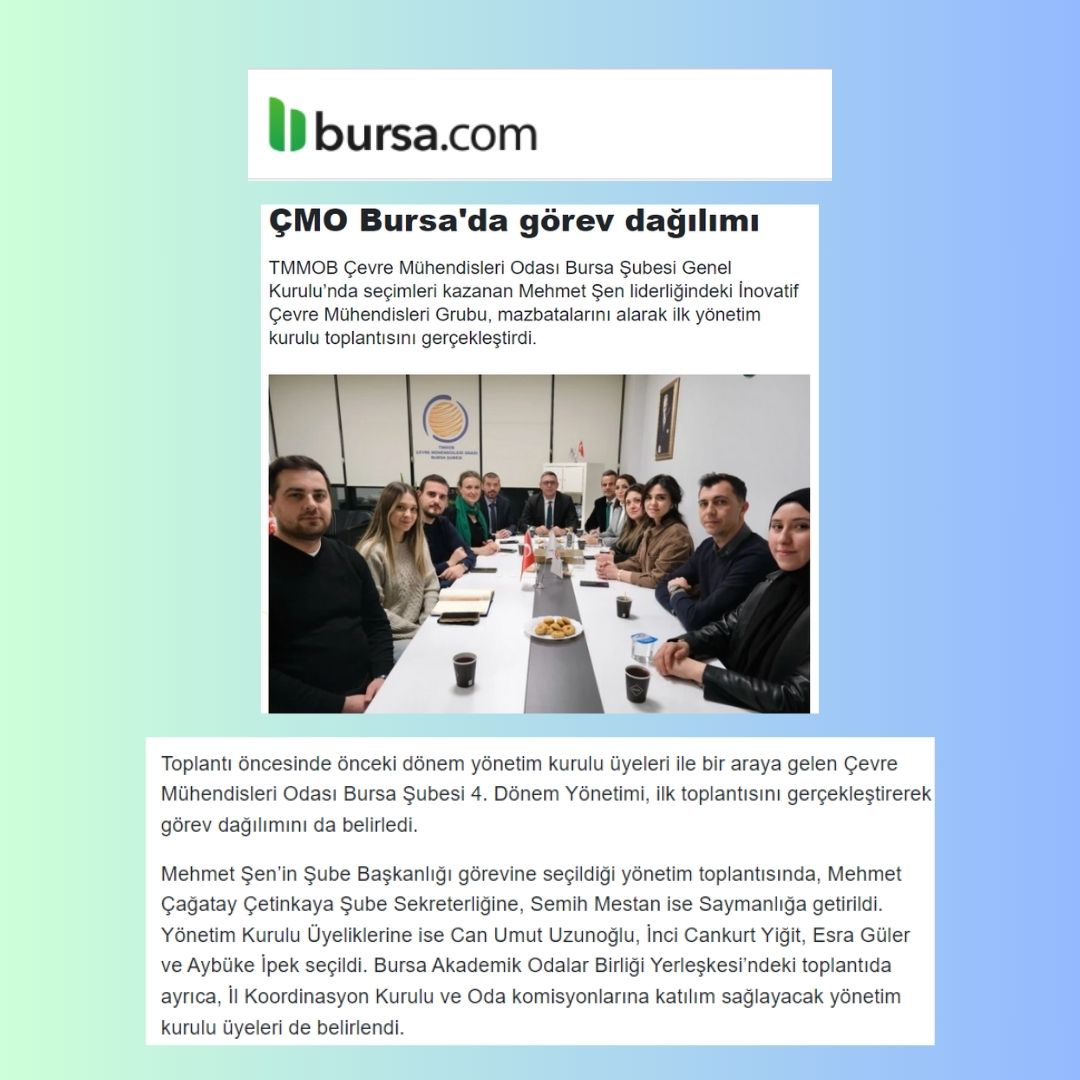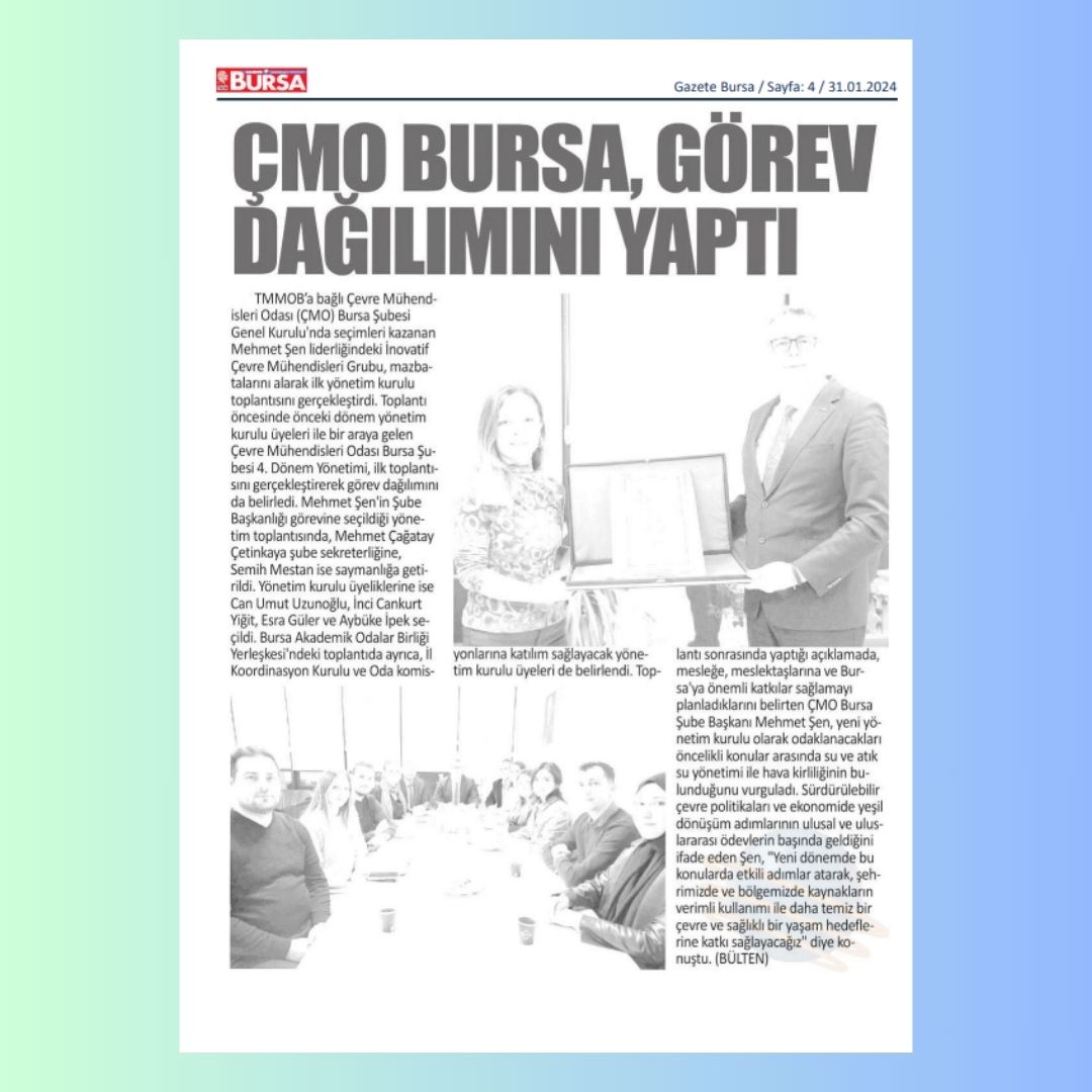 BASINDA BİZ - ÇMO Bursa Şube 4. Dönem Yönetim Kurulu görev dağılımını tamamladı.