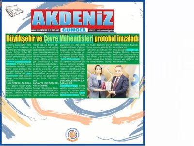 İşbirliğine ilişkin protokol Büyükşehir Belediye Başkanı Muhittin Böcek ve Çevre Mühendisleri Odası Antalya Şubesi Şube Başkanımız Sn. Derya Ünver tarafından imzalandı.