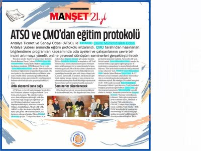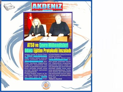 TMMOB ÇEVRE MÜHENDİSLERİ ODASI ANTALYA ŞUBE VE ANTALYA TİCARET VE SANAYİ ODASI ARASINDA EĞİTİM PROTOKOLÜ İMZALANDI.
