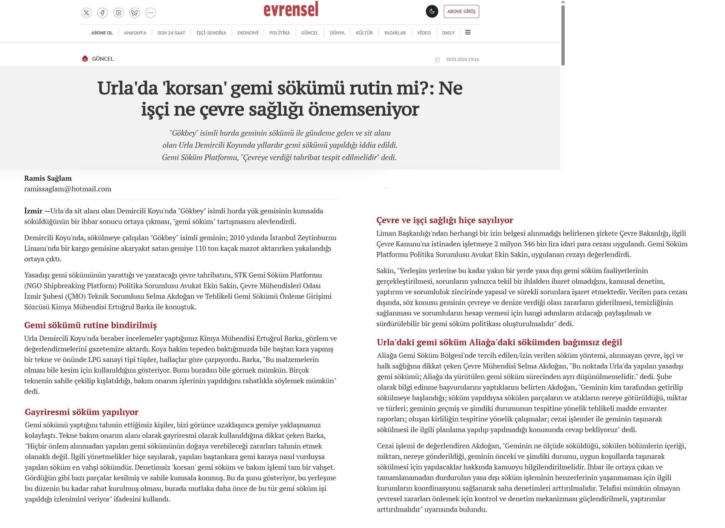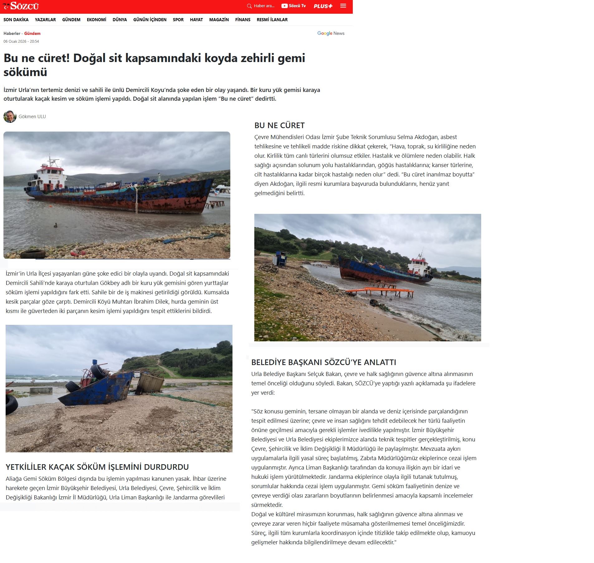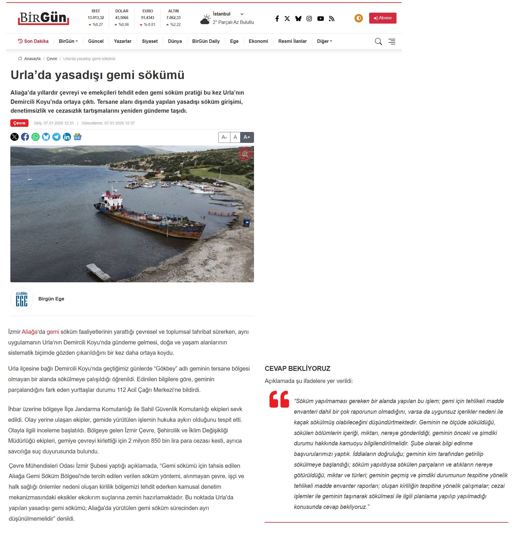 7. Urla’da Yasadışı Gemi Sökümü (Birgün, 07.01.2026)