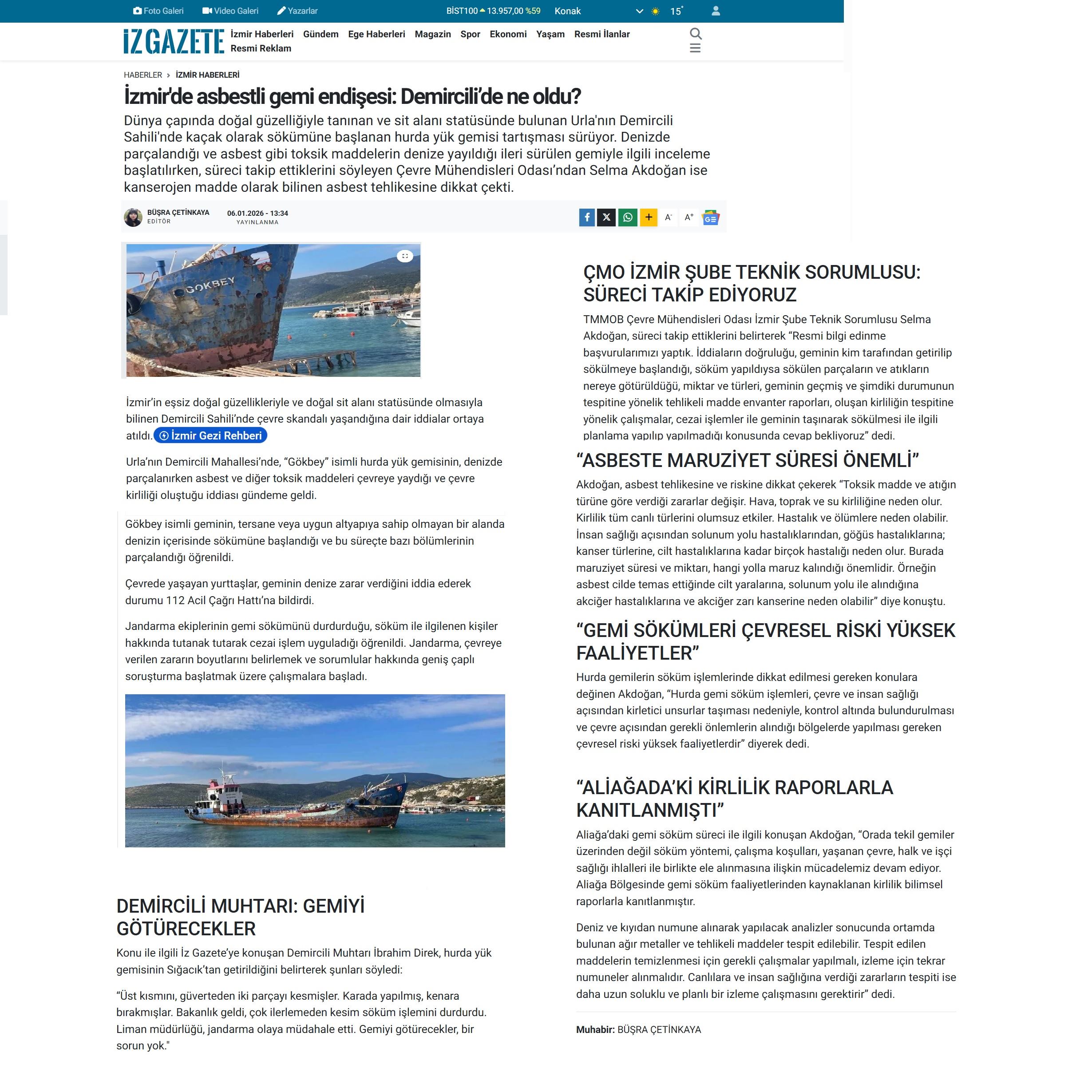 6. İzmir'de Asbestli Gemi Endişesi: Demircili’de Ne Oldu? (İz Gazete, 06.01.2026)