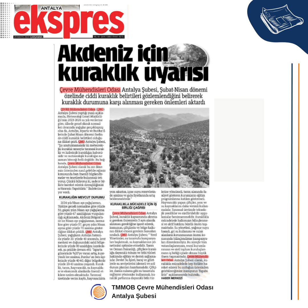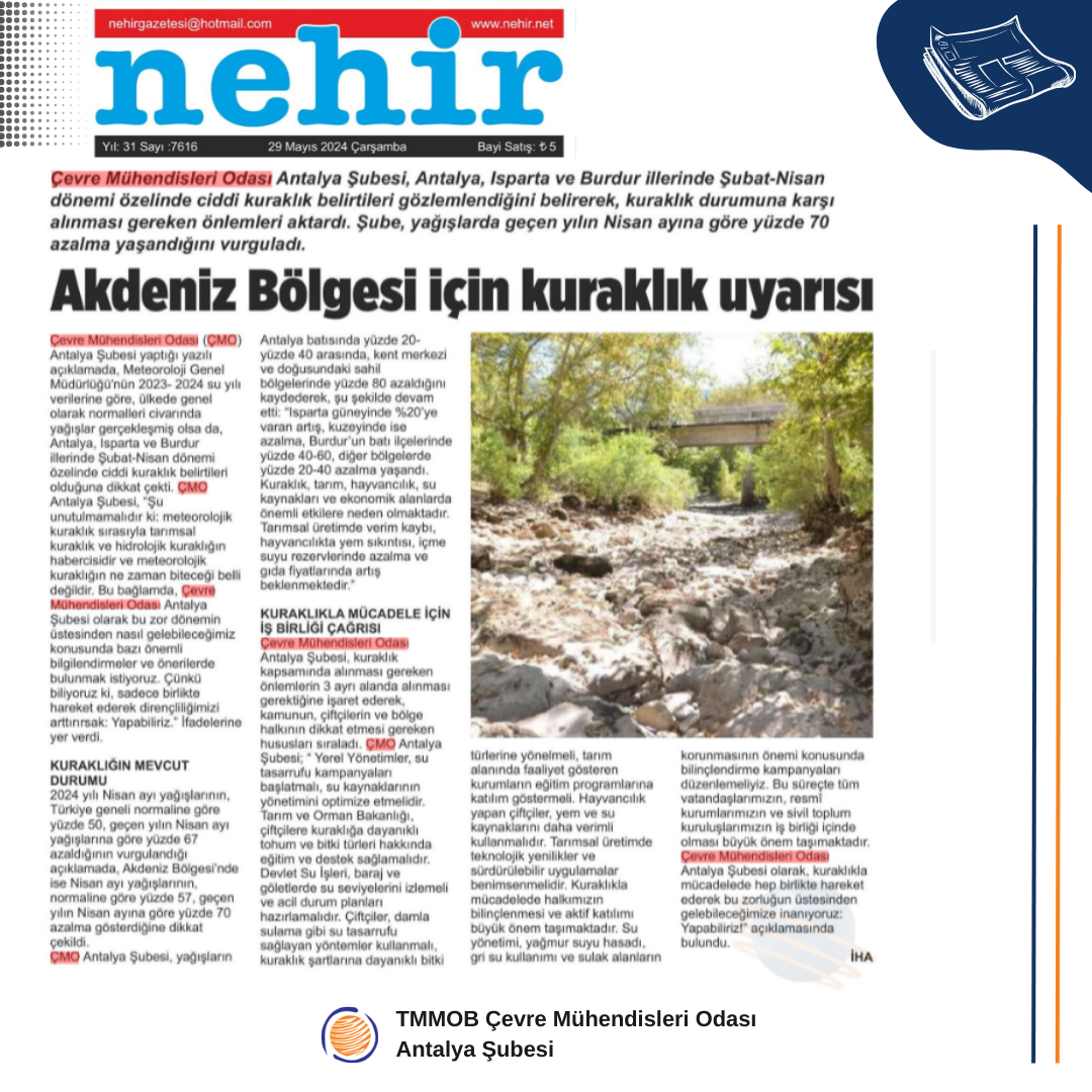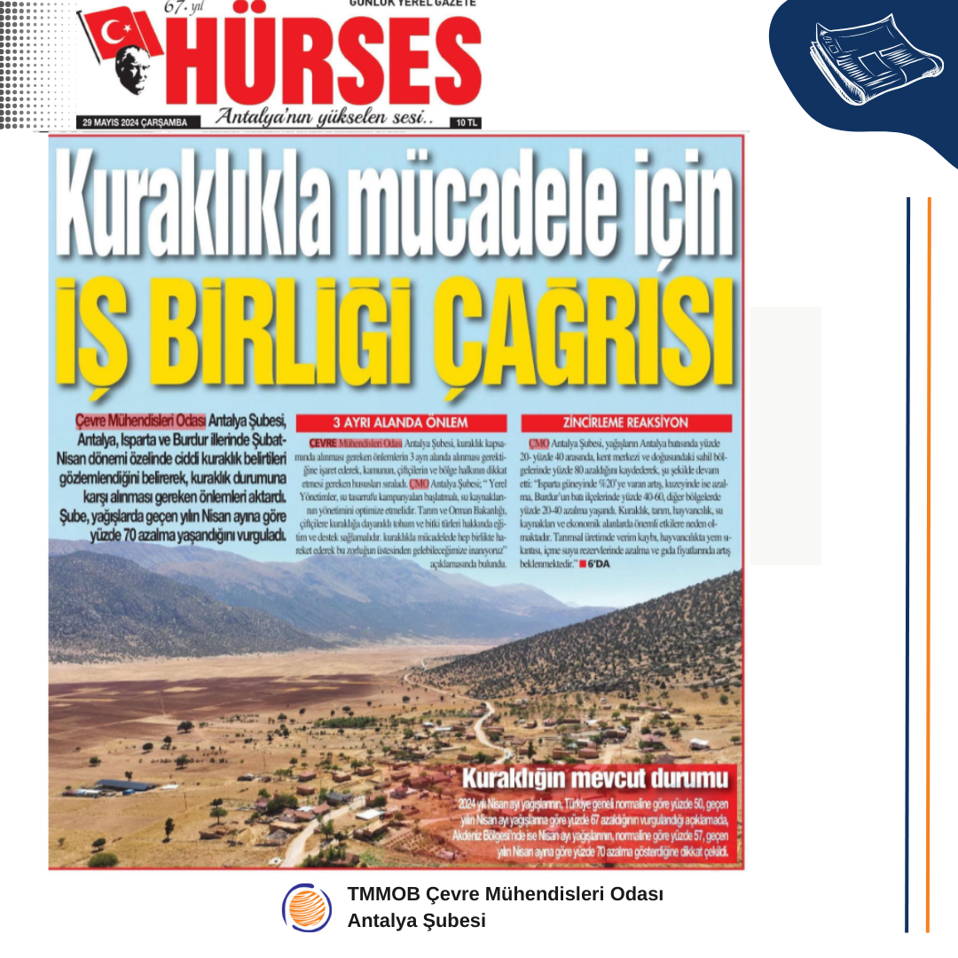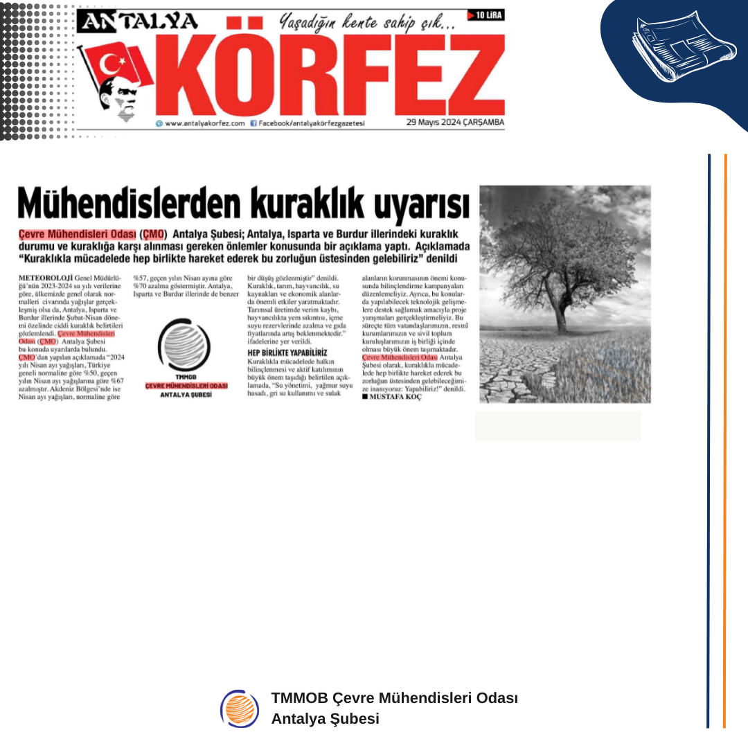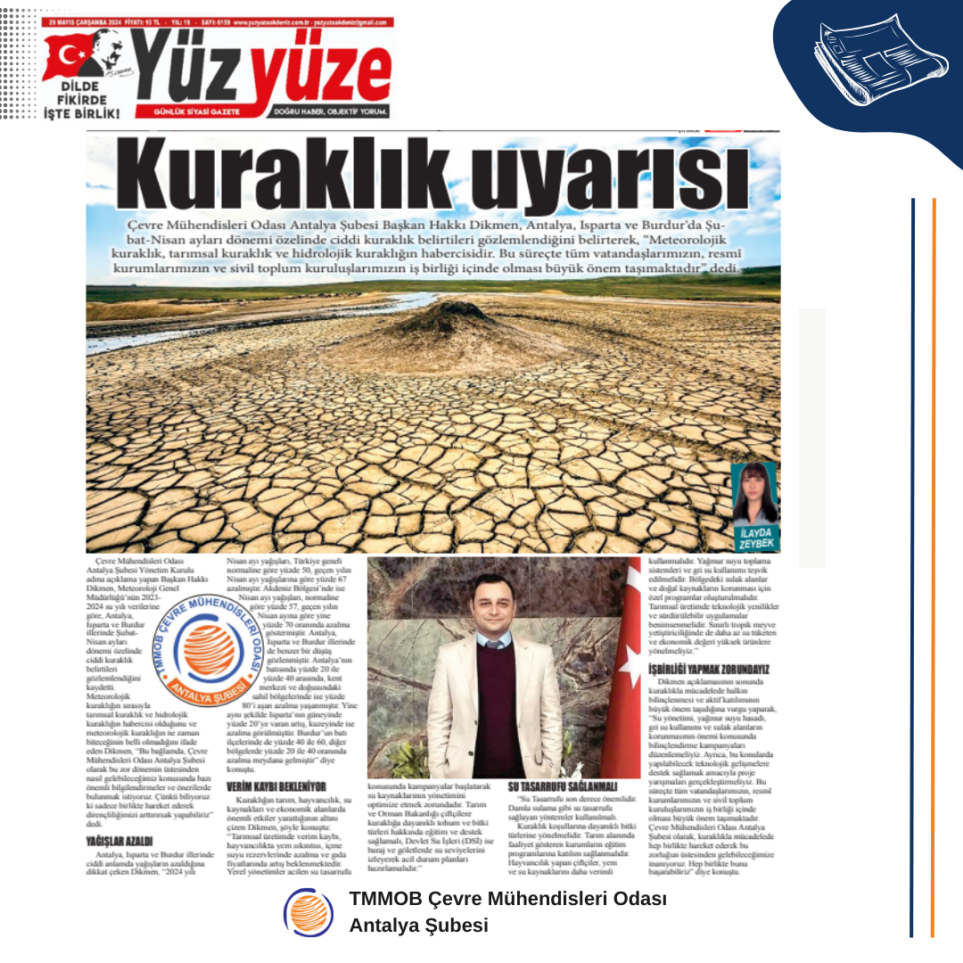 Çevre Mühendisleri Odası Antalya Şubesi olarak, kuraklıkla mücadelede hep birlikte hareket ederek bu zorluğun üstesinden gelebileceğimize inanıyoruz: YAPABİLİRİZ!