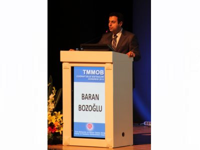 11-13 Kasım 2013 tarihleri arasında ODTÜ Kültür ve Kongre Merkezinde düzenlenen kongrenin ilk günkü panellerinden "Enerji ve Çevre" paneline katılan Başkanımız Bozoğlu bir de sunum yaptı. Makine Mühendisleri Odası Genel Başkanı Ali Ekber Çakarın oturum başkanlığını yaptığı panelin diğer konuşmacıları ise Hayati Çetin, Onur Paşaoğulları, Oğuz Türkyılmaz ve Yaşar Aydın oldu. Yaptığı sunumda Türkiyenin enerji ihtiyacının farkında olduklarını belirten Başkanımız Bozoğlu, "Enerji ihtiyacımızın olması demek, çevre mevzuatını delmek anlamına gelmemelidir" diye konuştu. Çevre mevzuatındaki sıkıntılara değinen Başkanımız, ÇED süreçlerinden bahsedip çözüm önerilerini sundu. Çevre mücadelesinde Odamızın açtığı davalara da değinen Başkanımız Bozoğlu, "Açtığımız davalar dolayısıyla bizi her şeye karşı çıkan istemezükçüler ilan ediyorlar. Halbuki, biz bu davaları hukuka uygun olmadığı için açıyoruz. Her projenin halk için yapılıp yapılmadığını da denetlemek bizim görevimiz" diye konuştu.