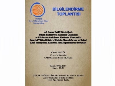BİLGİLENDİRME TOPLANTISI: AB SEVESO II&III DİREKTİFLERİ, BÜYÜK ENDÜSTRİYEL KAZALARIN ÖNLENMESİ VE ETKİLERİNİN AZALTILMASI HAKKINDA YÖNETMELİKSANAYİCİ YÜKÜMLÜLÜKLERİ, BİLDİRİM SİSTEMİSEVESO VE BEKRA)KAZA SENARYOLARI, KANTİTATİF RİSK DEĞ. METOTLARI