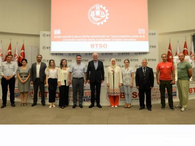 BTSO 55. Meslek Komitesi Üyeleri, İl Milli Eğitim Müdürlüğü, Çevre, Şehircilik Ve İklim Değişikliği İl Müdürlüğünün katılımı ile gerçekleşen toplantıda okullarda çevre ve iş sağlığı konularında farkındalık oluşturmak hedefiyle ortaklaşa yapılacak çalışmalar değerlendirilmiştir.