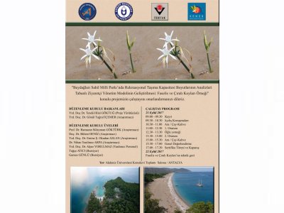 21-22 Eylül tarihlerinde Akdeniz Üniversitesi Konukevi Toplantı Salonunda "Beydağları Sahil Milli Parkında Rekreasyonel Taşıma Kapasitesi Boyutlarının Analizleri Tabanlı Ziyaretçi Yönetim Modelinin Geliştirilmesi: Faselis ve Çıralı Koyları Örneği" konulu projenin çalıştayı yapılacaktır. Tüm Üyelerimiz ve ilgi duyan herkes davetlidir.