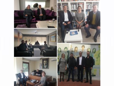 Üyelerimizden Arüv Çevre sahibi Cem Arüve, İSİS Çevre Danışmanlık sahibi üyemiz Ahmet Akçacıoğluna, Mersu Arıtma sahibi üyelerimiz Meral Mengi ve Adnan Mengiye A.Tuluk Çevre sahibi üyemiz Abtullah Tuluk ve Alper Deveciye yaptığımız ziyaretlerimizde; çevre görevlisi prosedürlerinin zorlukları, meslektaşlarımızın danışman firmalarda yaşadığı birtakım sıkıntılar, çevre danışmanlık firmalarının uygulamada yaşadığı sorunlar ve çözüm önerileri, yeşil yıldız belgelendirmesinde danışman firmaların rolü, odamızın ve firmaların konuyla ilgili yapabileceği çalışmalar hakkında görüş alışverişinde bulunulmuştur.