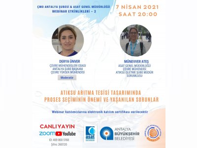 ÇEVRE MÜHENDİSLERİ ODASI ANTALYA ŞUBESİ & ASAT GENEL MÜDÜRLÜĞÜ WEBINAR PROGRAMI DEVAM EDİYOR
