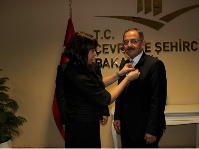 Oldukça sıcak ve samimi bir atmosferde geçen görüşmenin ardından taraflar toplu fotoğraf çektirdi. ÇMO Ankara Şube Başkanı İlkim Yiğit, Çevre ve Şehircilik Bakanı Mehmet Özhaseki`ye Çevre Mühendisleri Odası rozeti taktı.