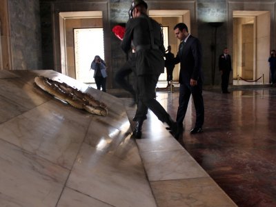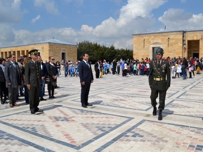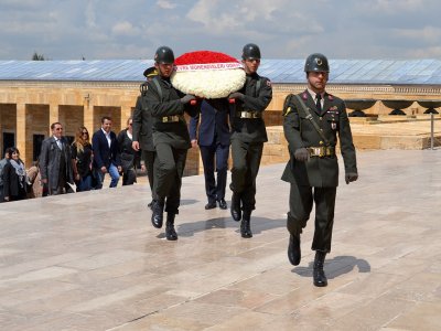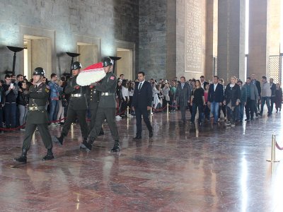 Baran Bozoğlu Başkanlığında, İkinci Başkan Zeyneti Bayrı Ünal, Genel Sekreter Cem Ferda Tunçer, birim temsilcileri ve çevre mühendislerinden oluşan topluluk, askerlerin eşliğinde mozoleye yerleştirilen çelenk töreninin ardından saygı duruşunda bulundu.