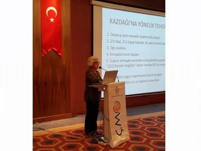 Çalıştayda Endüstriyel Yatırımlar ÇED Dairesi Başkanı Cihan Tatar, Kazdağı Doğal ve Kültürel Varlıkları Koruma Derneği Başkanı Süheyla Doğan Ünal, Dünya Bankası Çevre Uzmanı Esra Atlı Arıkan, Sürdürülebilir Kalkınma Akademisi Yönetim Kurulu Başkanı Murat Sungur Bursa, ÇMO Hukuk Müşaviri Emre Baturay Altınok, ODTÜ Öğretim Üyesi Dr. Haluk Çeribaşı ve Yeterlik Daire Başkanlığı` ndan Nejat AYDIN sunum gerçekleştirdi.