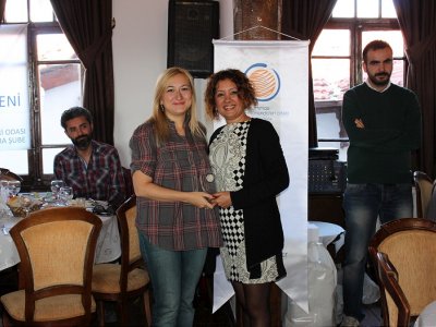 Törene katılan Yönetim Kurulu üyelerinden İkinci Başkan Mert Güvenç ve Yeşer Aslanoğlu da plaketlerini Şube Başkanı Özge Ergen Güvenç`in elinden aldı.