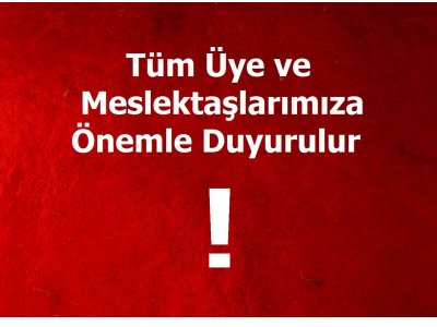 DEĞERLİ ÜYELERİMİZİN VE MESLEKTAŞLARIMIZIN DİKKATİNE, ÖNEMLE DUYURULUR!