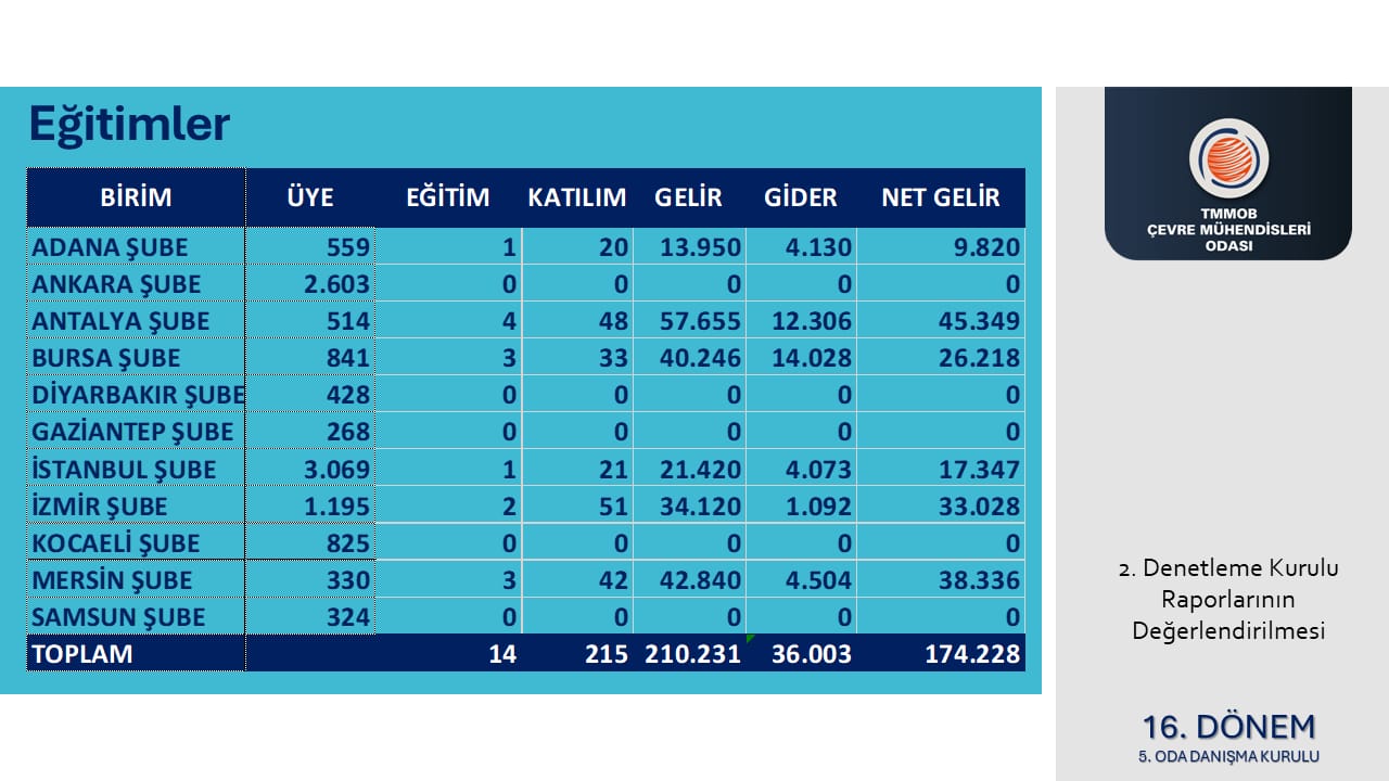 Son Oda Danışma Kurulu'muzda da paylaşılan Denetleme Kurulu Raporu'nun değerlendirilmesine ait çıktılar aşağıdadır.