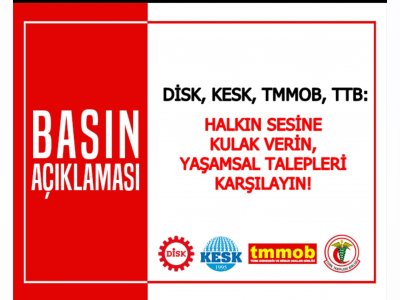 DİSK-KESK-TMMOB-TTB: HALKIN SESİNE KULAK VERİN,YAŞAMSAL TALEPLERİ KARŞILAYIN!