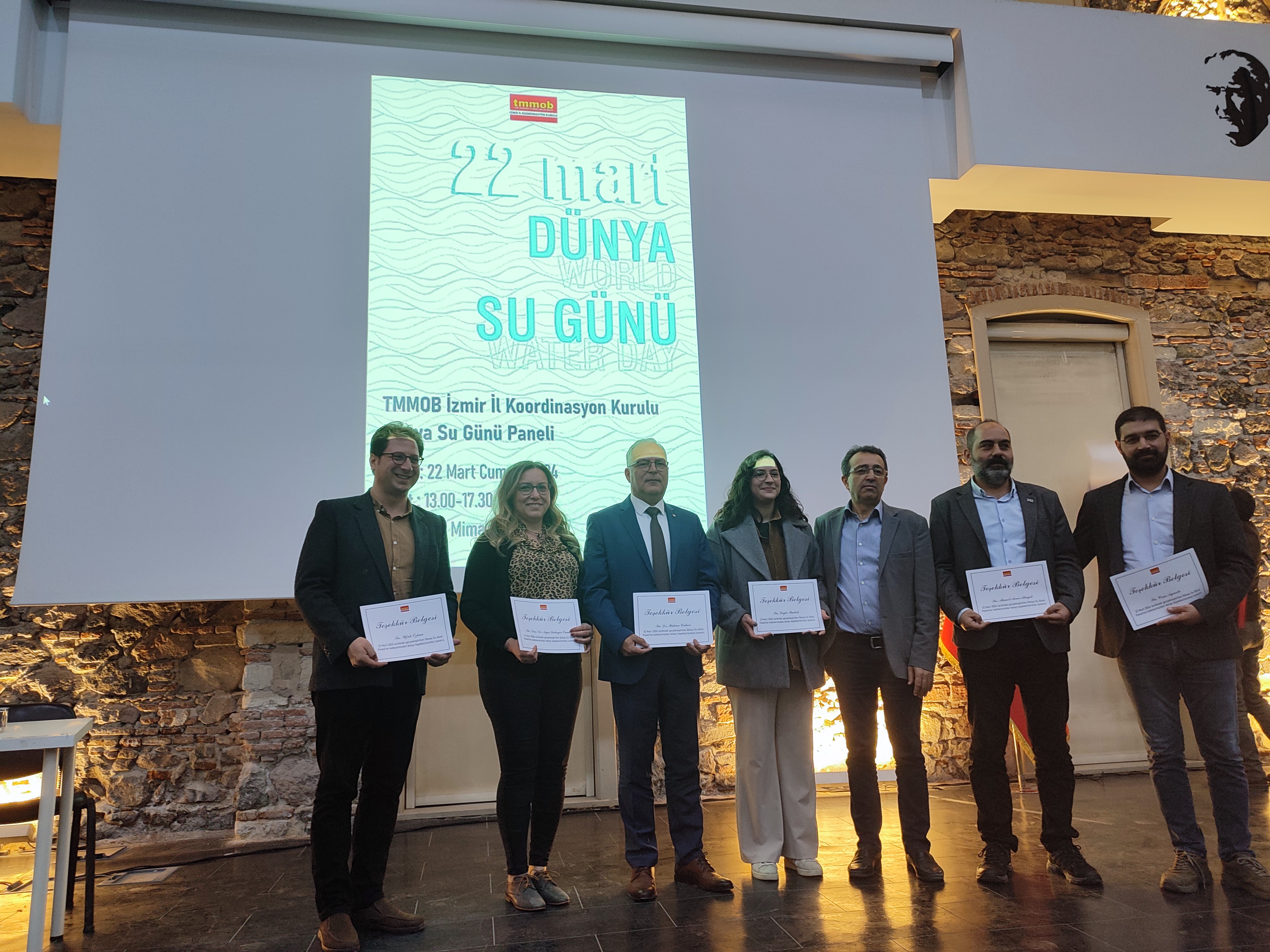 22 Mart 2024 tarihinde İzmir Mimarlık merkezinde Dünya Su günü dolayısıyla TMMOB İzmir İl Koordinasyon Kuruluna bağlı odalar tarafından 22 Mart Dünya Su Günü Paneli gerçekleştirilmiştir.
