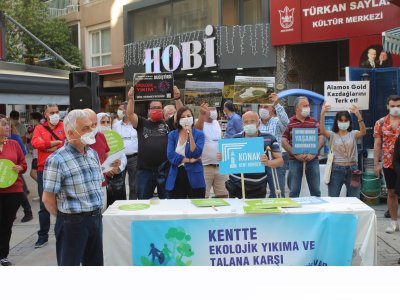 Kentleşme ve altyapı sorunları olan İzmir`de de ekolojik yıkımla, talanla mücadele ve dayanışmada biz Meslek Odaları, Ekoloji ve Çevre Platformları, dernek ve oluşumlar, Kent Konseyleri ve duyarlı kentliler olarak yan yana durarak direniyor ve itirazlarımızı yükseltiyoruz.