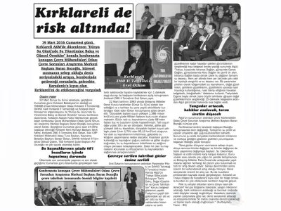 22 Mart Dünya Su Günü sebebiyle, Kırklareli Belediyesinin desteği ve TMMOB Ziraat Mühendisleri Odası Kırklareli İl Temsilciliği, DAYKO Vakfı Kırklareli İl Temsilciliği ve Kırklareli Kent Konseyinin organizasyonu ile "Dünya Su Gününde Su Yönetimine Bakış ve Güncel Örnekler konulu konferans düzenlendi.