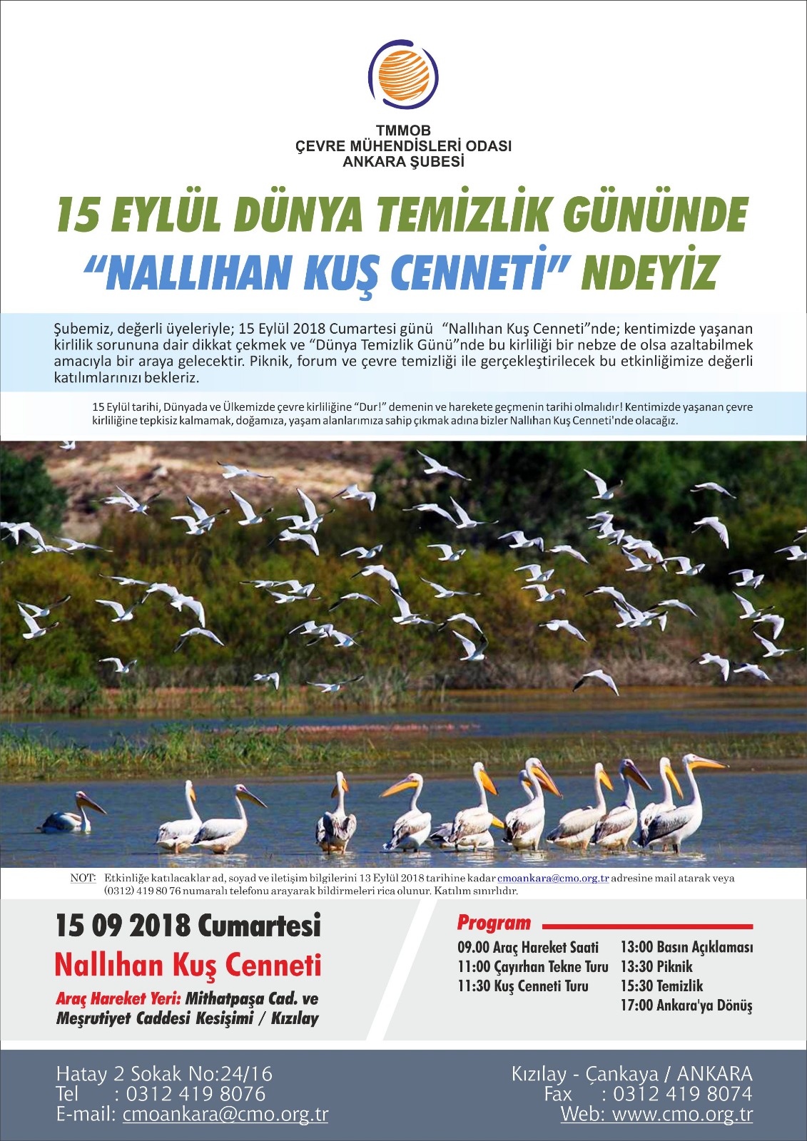 Biz Çevre Mühendisleri Odası Ankara Şubesi olarak, bugüne dikkat çekmek için Doğal miras olan Nallıhan Kuş Cennetini üyelerimiz ile birlikte temizlemeye geldik.