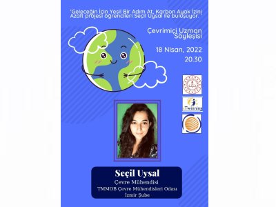 "Geleceğin İçin Yeşil Bir Adım At, Karbon Ayak İzini Azalt" konulu E-Twining Projesi kapsamında gerçekleştirilen çevrimiçi söyleşiye Şubemiz adına konuşmacı olarak üyemiz Seçil UYSAL tarafından katılım sağlanmıştır.