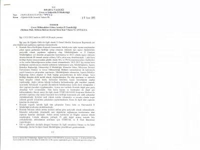 Tüm bu konuların meslektaşlarımızın alanı dahilinde olması, kamu yararı güden sivil toplum kuruluşu olmamız ve Antalya ile birlikte Isparta ve Burdur illerinin temsilcilik etkinlik kapsamında yer alması dolayısıyla Çevre Mühendisleri Odası Antalya Temsilciliği tarafından konunun objektif olarak değerlendirilebilmesi amacıyla ilgili sorular yetkili makamlara sorularak veriler talep edilmiştir.