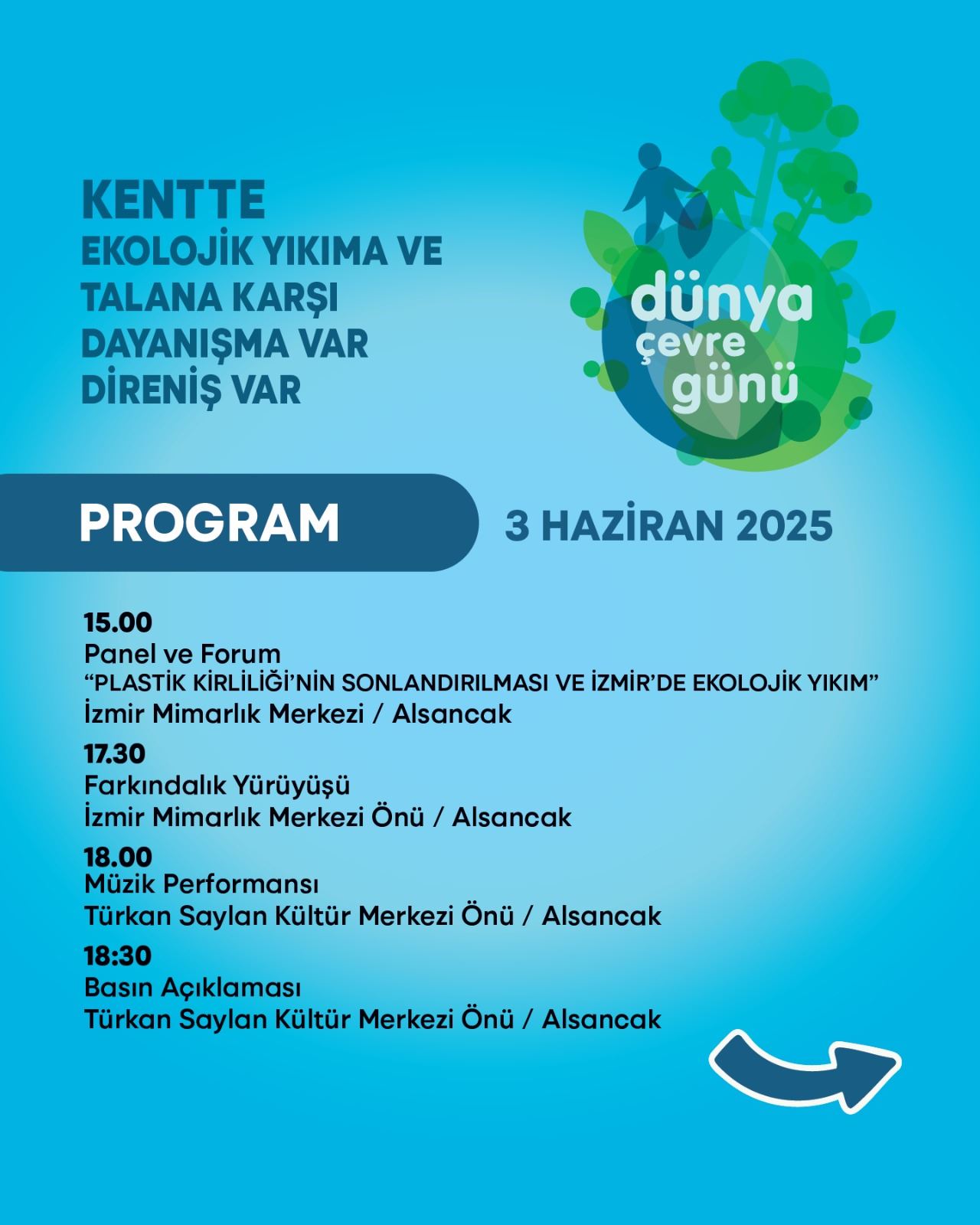 Bu süreçte gerçekleştireceğimiz etkinliklerle her yıl olduğu gibi bu yıl da kamuoyunu ekoloji sorunlarıyla ilgili bilgilendirmek, farkındalık yaratmak ve mücadelemizi büyütmek için çalışacağız.