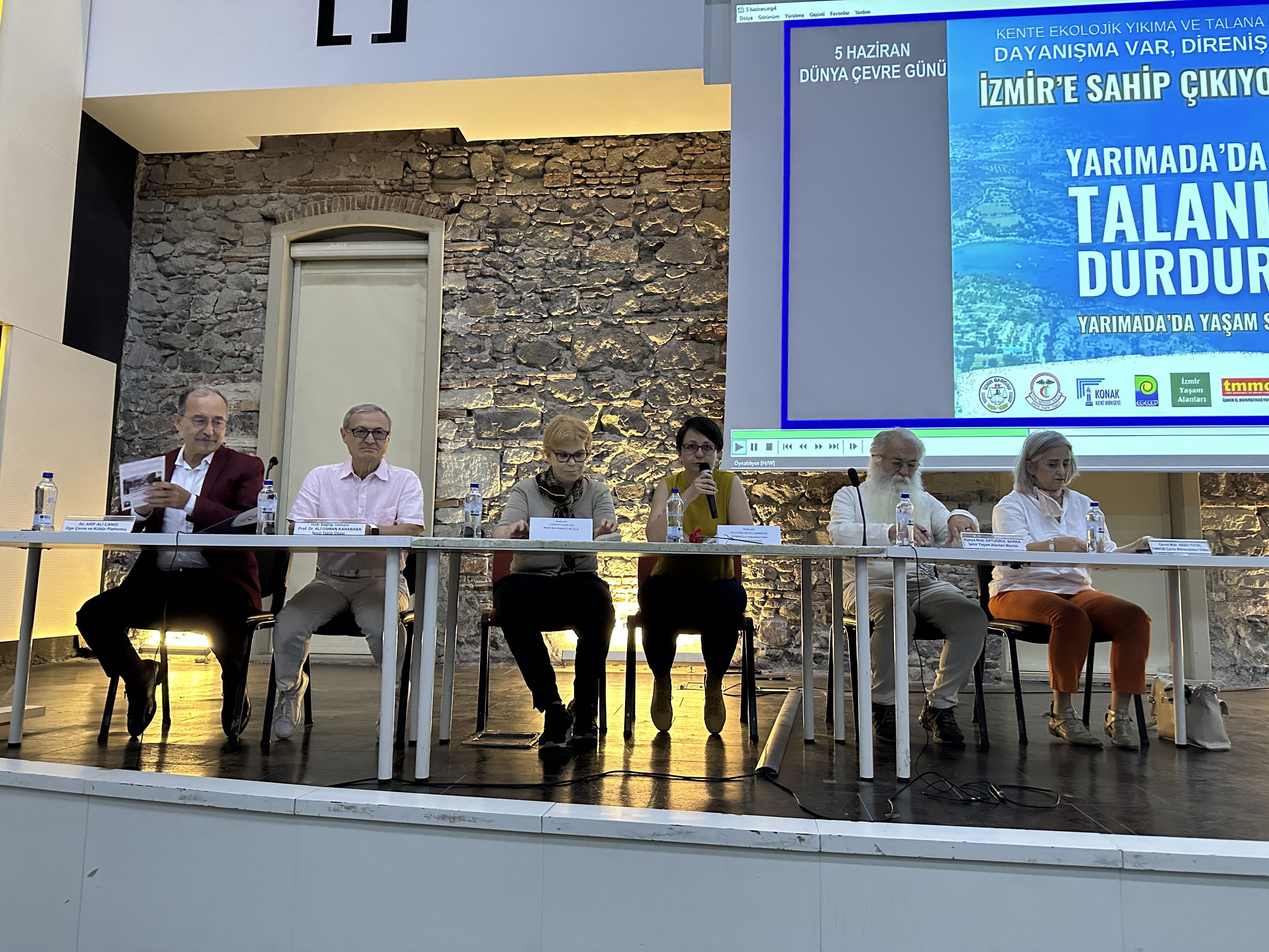 Etkinlikte; Şubemiz adına Yönetim Kurulu Üyemiz Arzu YÜCEL, İzmir Yaşam Alanları Platformu adına Ertuğrul BARKA, İzmir Tabip Odası adına Prof. Dr. Ali Osman KARABABA ve Ege Çevre ve Kültür Platformu adına Av. Arif Ali CANGI konuşmacı olarak yer almıştır.