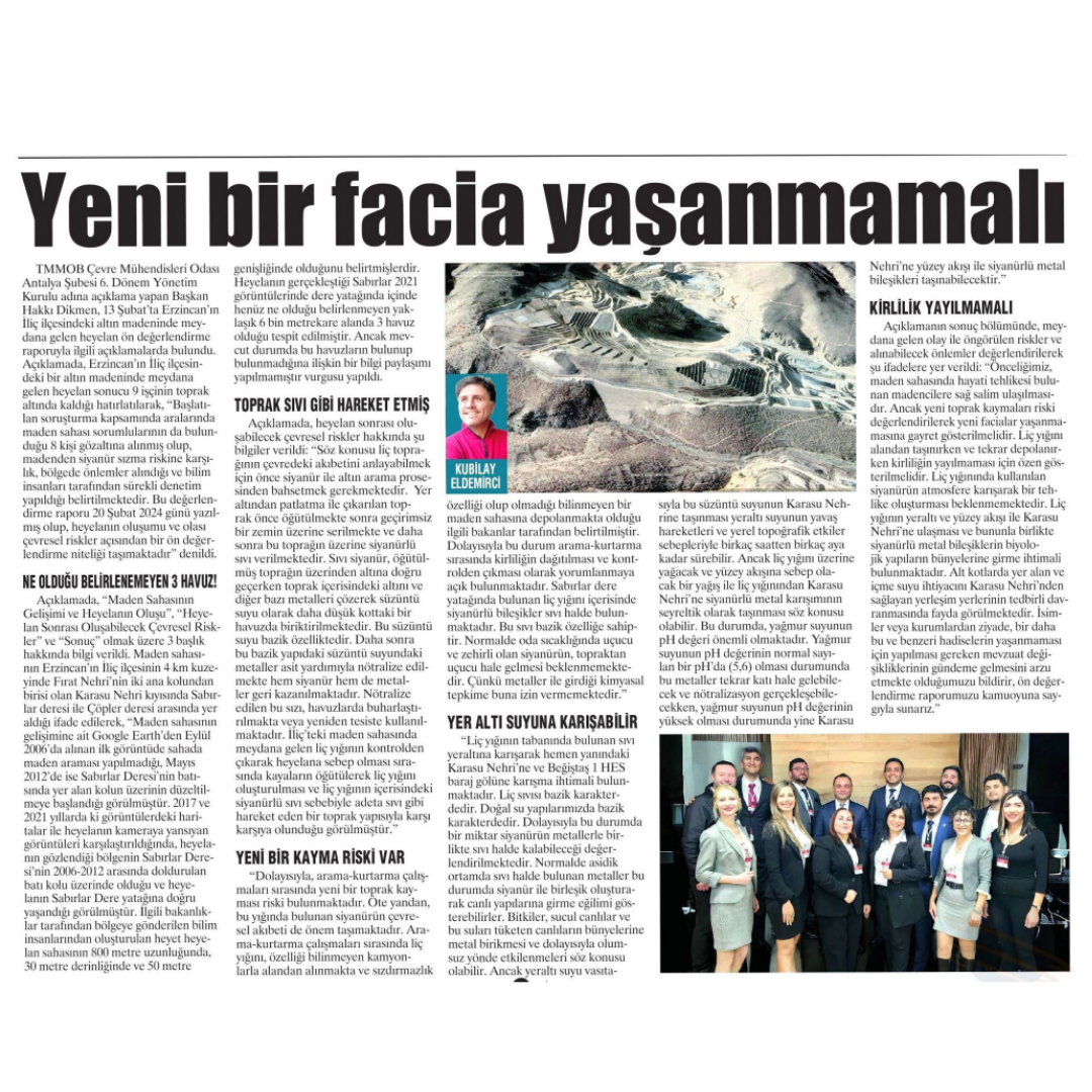 ERZİNCAN İLİÇ İLÇESİNDEKİ ALTIN MADENİNDE MEYDANA GELEN HEYELAN ÖN DEĞERLENDİRME RAPORUMUZ BASINA YER ALMIŞTIR.