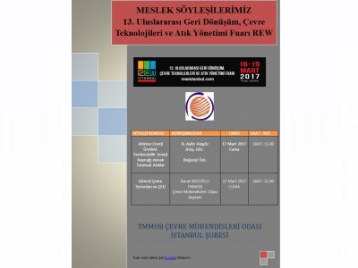 13. Uluslararası Geri Dönüşüm, Çevre Teknolojileri ve Atık Yönetimi Fuarı 16-19 Mart 2017 tarihlerinde İstanbul TÜYAP Beylikdüzü Fuar alanında yapılacak.