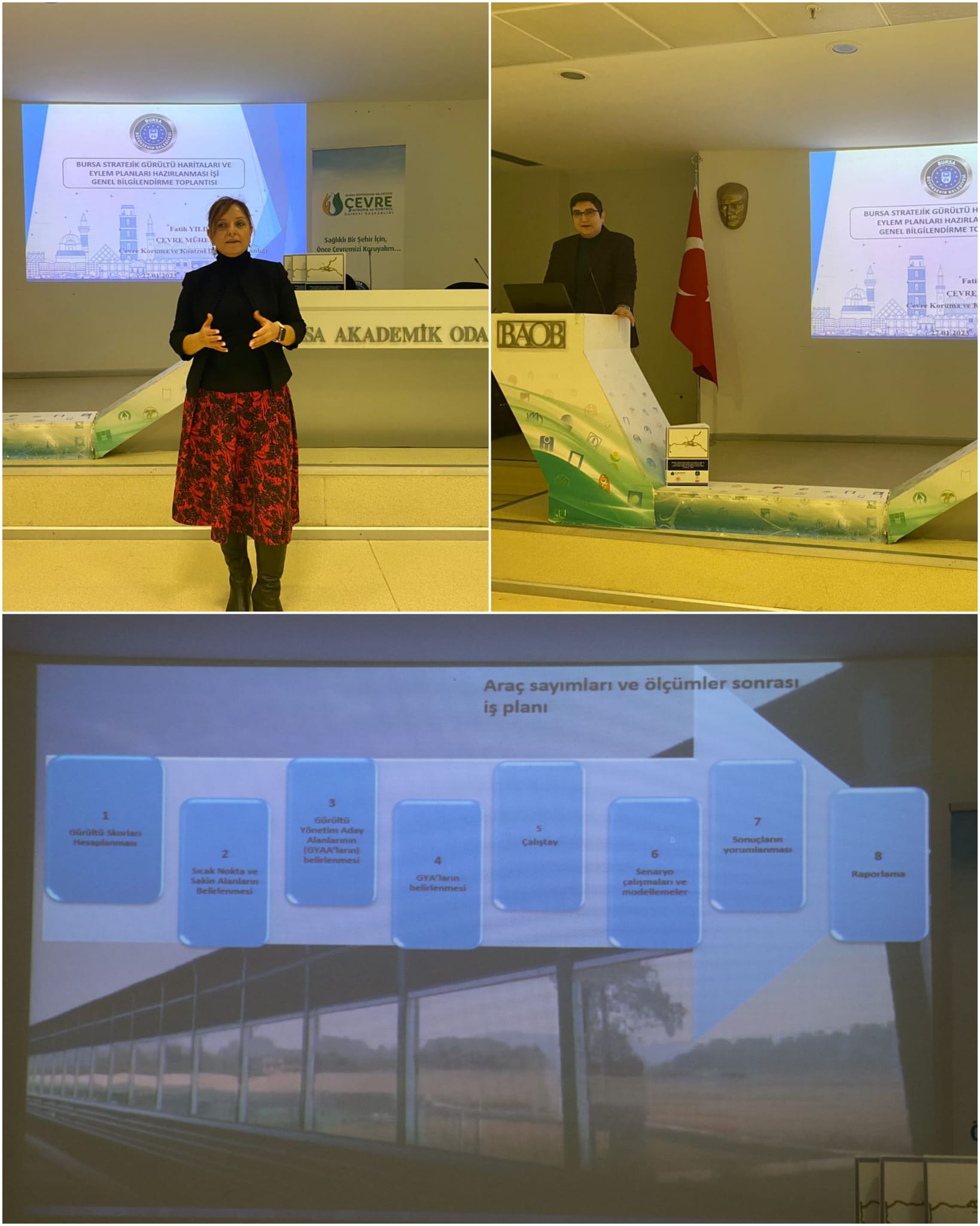 27.01.2023 tarihinde Bursa Büyükşehir Belediyesi tarafından '‘Gürültü Haritaları ve Eylem Planları’’ yla ilgili yakın zamanda yapılacak olan ortak çalıştay öncesi BAOB' da gerçekleşen bilgilendirme toplantısına Şube Başkanımız Sevim YÜRÜTEN katılım sağlamıştır.