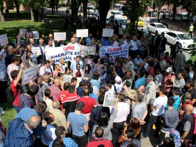 Çevre ve Şehircilik Bakanlığında bugün yapılacak ÇED toplantısı için Samsundan gelen TMMOB Çevre Mühendisleri Odası Samsun Şube Başkanı Özcan Çoluk, TERÇEP dönem başkanı Hasan Demir, TMMOB Samsun İKK‘dan Adnan Korkmaz, Samsun Elektrik Mühendisleri Odası Başkanı Mehmet Özdağ, Ziraat Mühendisleri Odası Genel Başkanı Özden Güngör ile Şube Başkanı Hayati Tosun, Samsunun Mimarlar Odası Başkanı İshak Memişoğlu ve Samsun halkı, Bakanlık önünde toplandı. Ellerinde santrali istemediklerini gösteren dövizler taşıyan topluluk, TERÇEP Başkanının yaptığı kısa konuşmanın ardından, toplantı bitiminde tekrar bir araya gelmek üzere dağıldı.