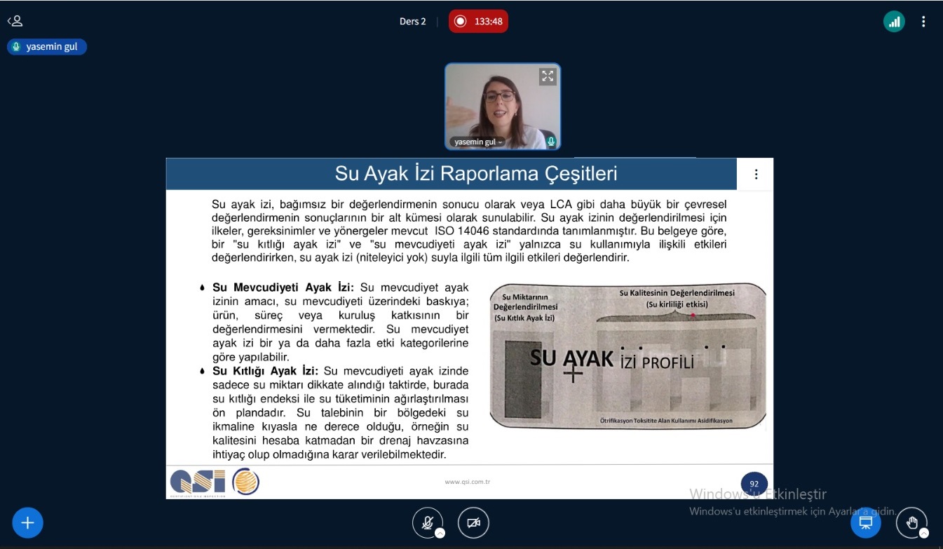 ISO 14046:2014 SU AYAK İZİ BİLGİLENDİRME EĞİTİMİNİ ÇEVRİMİÇİ OLARAK GERÇEKLEŞTİRDİK.