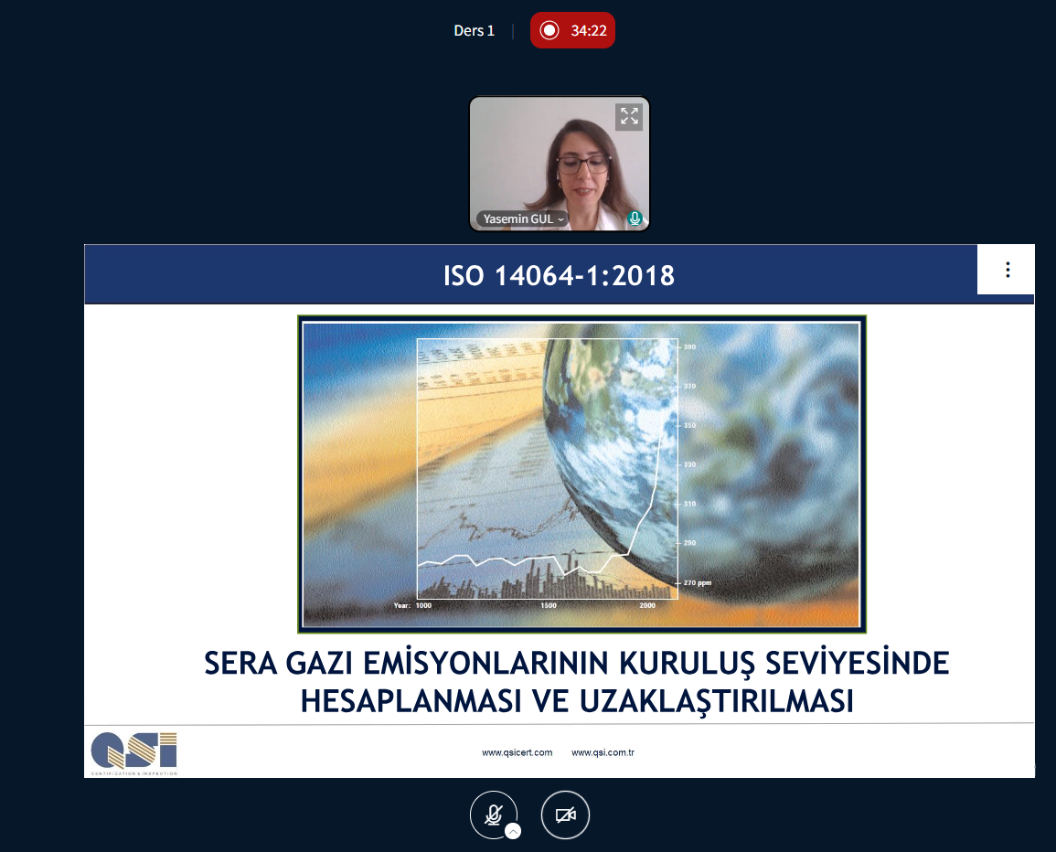 ISO 14064-1:2018 KURUMSAL KARBON AYAK İZİ (STANDARDI ÇERÇEVESİNDE SERA GAZLARI EMİSYONLARININ VE UZAKLAŞTIRMALARININ KURULUŞ SEVİYESİNDE HESAPLANMASI VE RAPORLANMASI) BİLGİLENDİRME EĞİTİMİNİ ÇEVRİMİÇİ OLARAK GERÇEKLEŞTİRDİK.