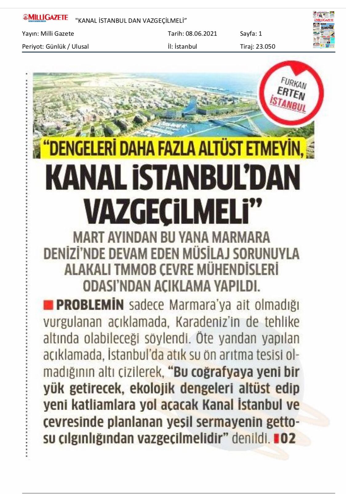 KANAL İSTANBUL`DAN VAZGEÇİLMELİMİLLİ GAZETE)