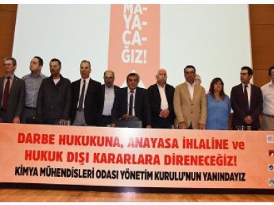 Kimya Mühendisleri Odamızın Yönetim Kurulu, söz konusu hukuk dışı mahkeme kararı üzerine, görev başında olduklarını ve Oda Yönetim Kurulu seçimlerinin olağan şekilde 2018 yılı Nisan ayında yapılacağını açıklamıştır. Kimya Mühendisleri Odamızın, TMMOB`nin ve bağlı Odaların özerk demokratik yapısını ortadan kaldırmak, baskı altına alarak susturmak isteyen iktidar politikalarına ve darbe hukukuna karşı, biz TMMOB`ye bağlı bütün Odalar olarak, Kimya Mühendisleri Odası ve TMMOB ile tam bir dayanışma içinde olduğumuzu kamuoyuna duyururuz.