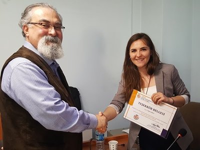 Seminer sonrasında Şube Başkanımız Sayın Sait Ağdacı, konuşmacılarımız Ediz UYANIK, Özge ESKİCİ ve Mesut ÖNEM e katkılarından dolayı teşekkür belgesi takdim etti.