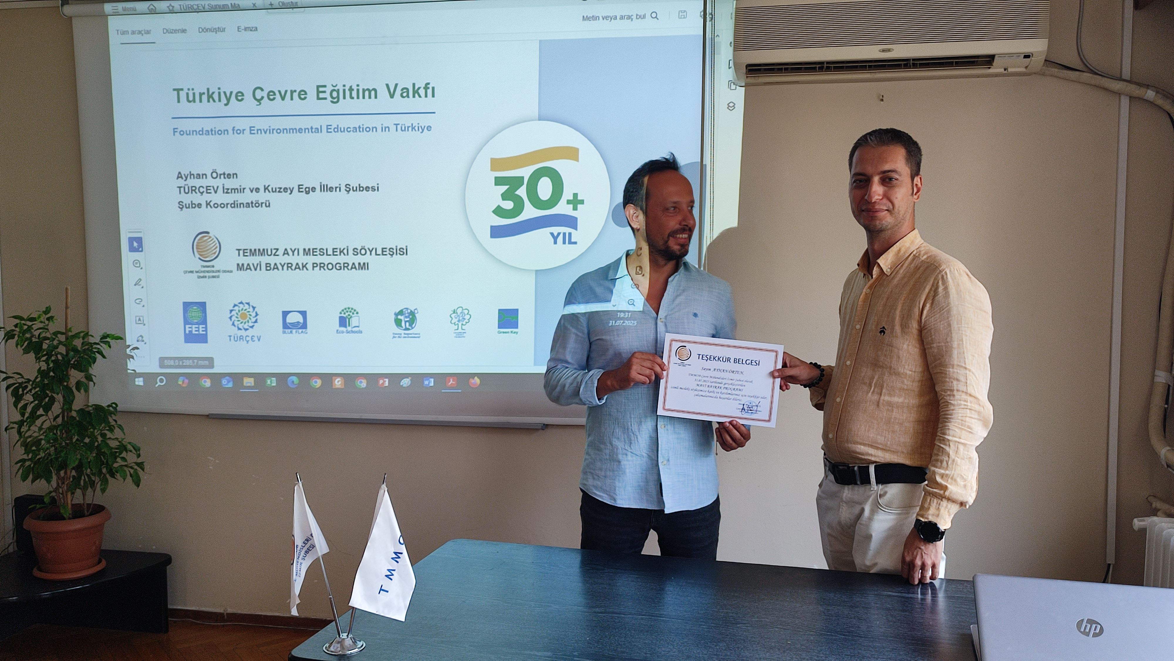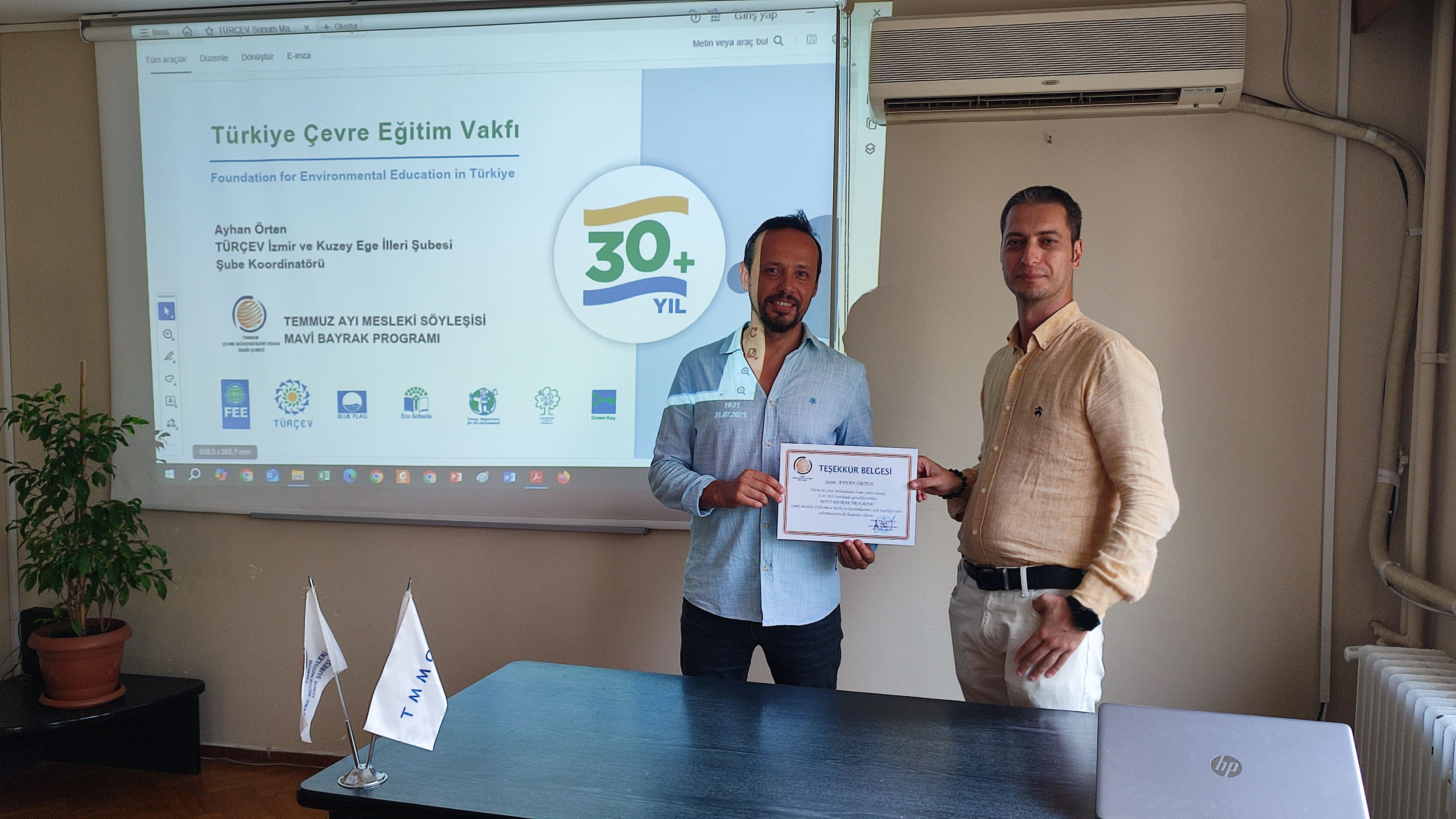 Şube Yönetim Kurulu Saymanımız Ayhan ÖRTEN'in konuşmacı olduğu söyleşi kapsamında Türkiye Çevre Eğitim Vakfı çalışmaları, Mavi Bayrak kriterleri, belgelendirme süreci ve uygulamalar konusunda bilgilendirme yapılmıştır.